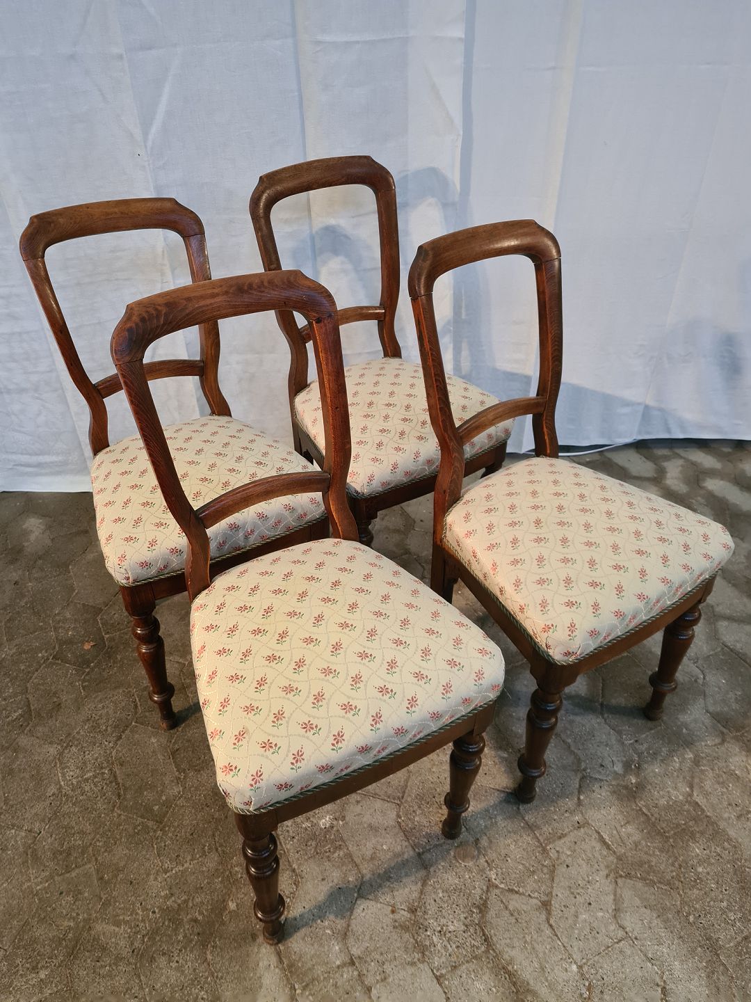 4 Salonstole i bøgetræ, fra 1910erne. De har brugssor. Ryghøjde 91cm Sædehøjde 47cm Emne nummer: 91026