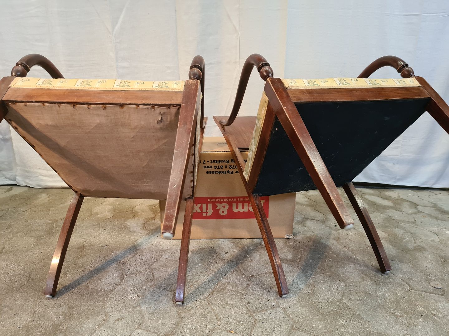 2 Armstole i mahogni og bøgetræ, fra 1910erne. De har brugsspor. Ryghøjde 85cm Sædehøjde 47cm Emne nummer: 91072