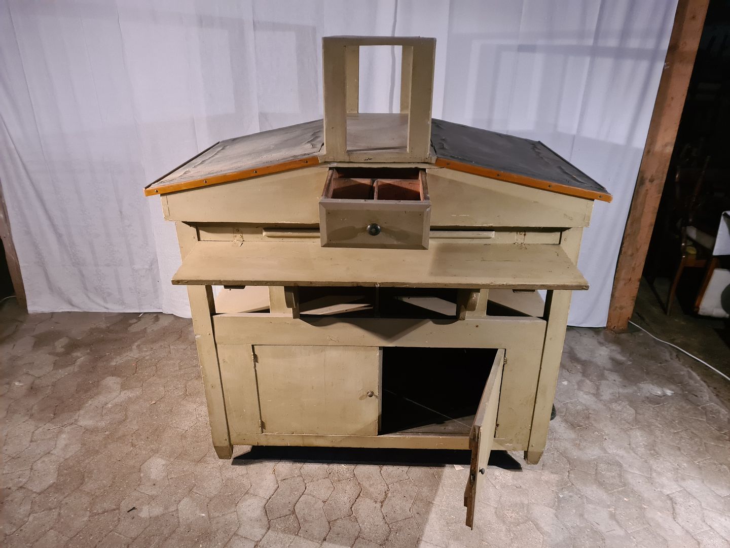 Malet dobbelt skrivepult i massivt fyrretræ, fra 1910-1920erne.