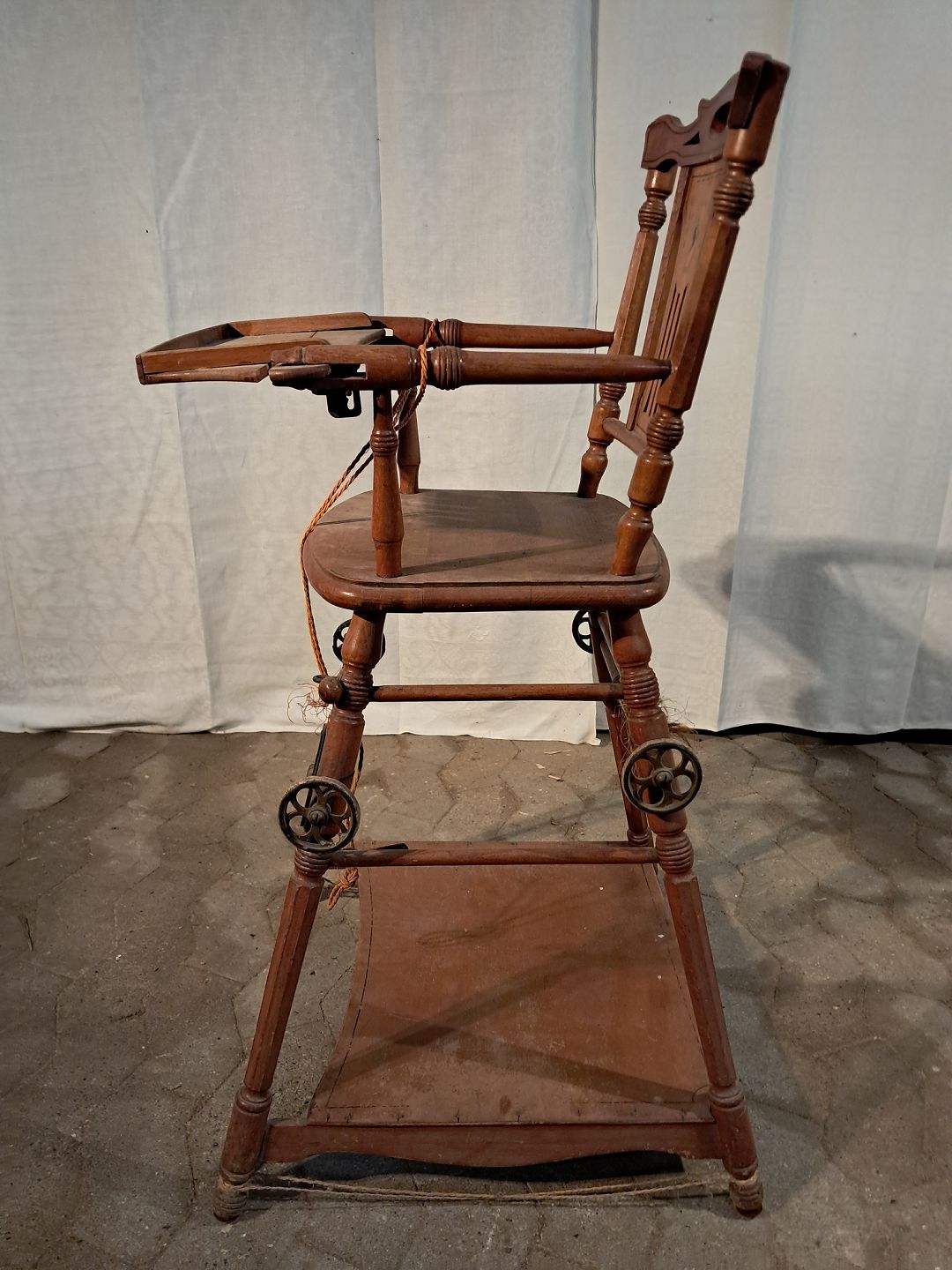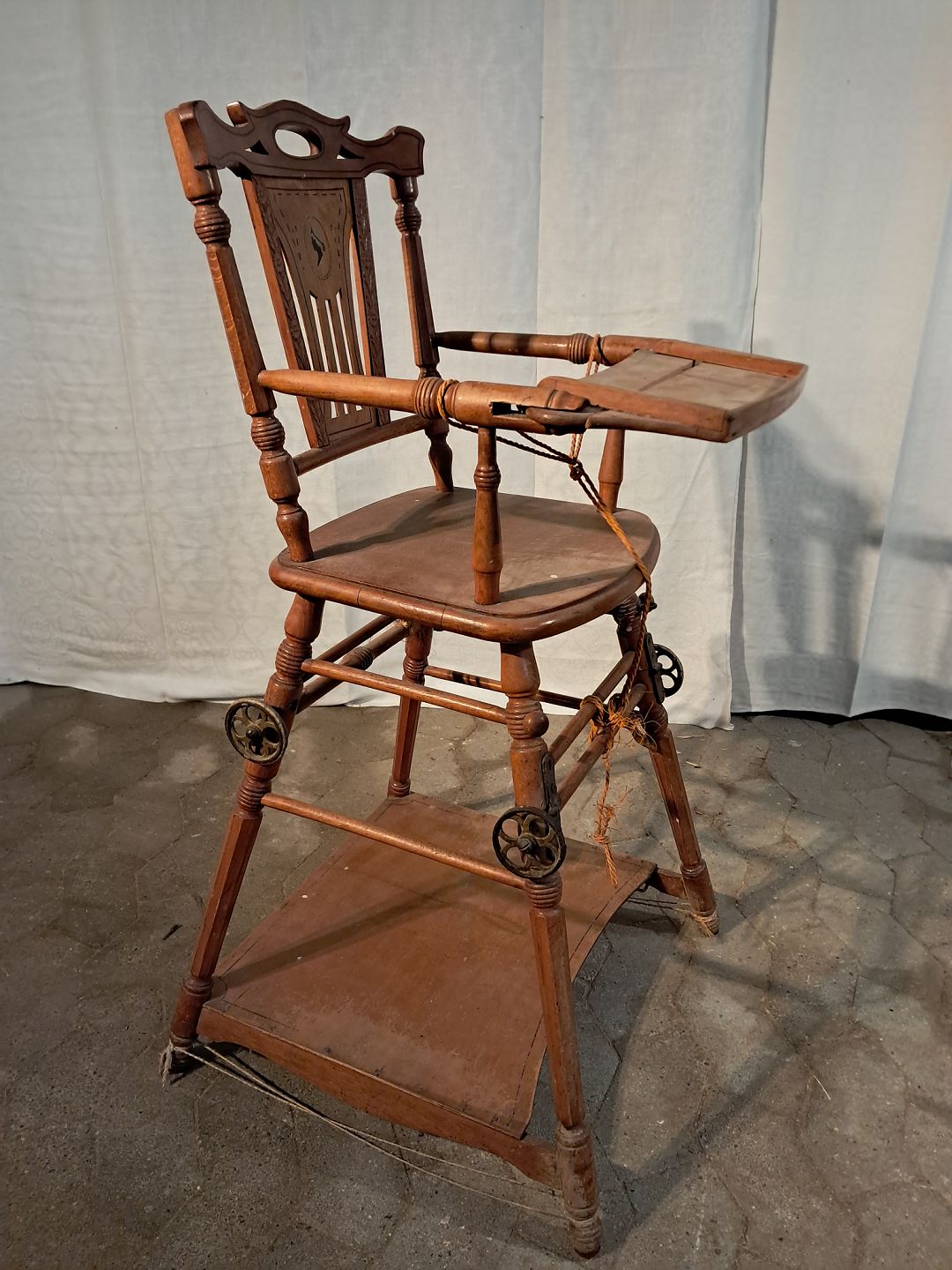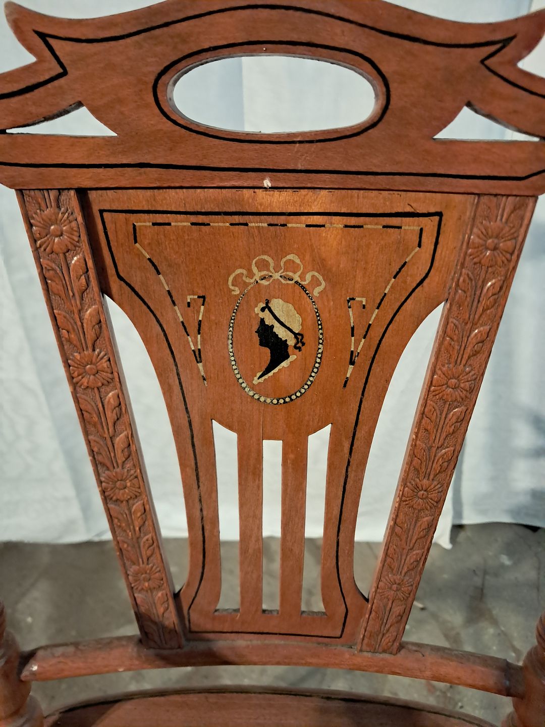 Barnestol i massivt bøgetræ med intarsia, fra 1920erne.