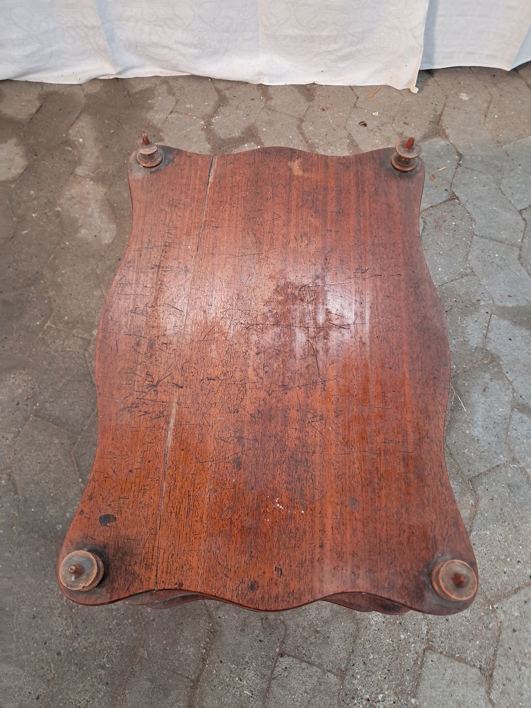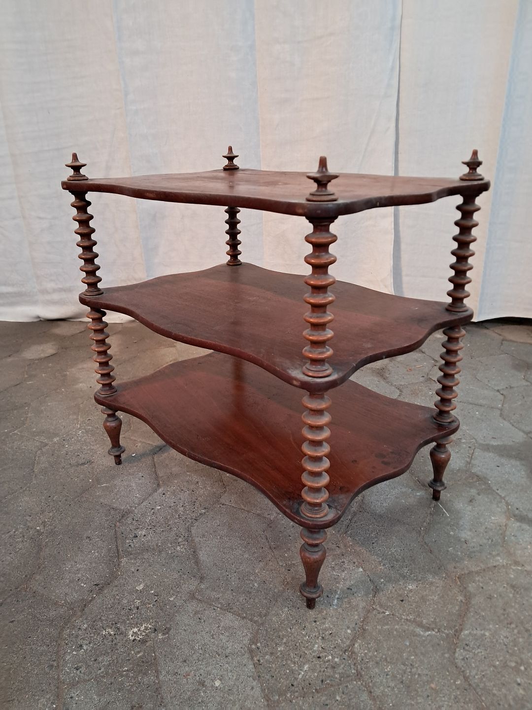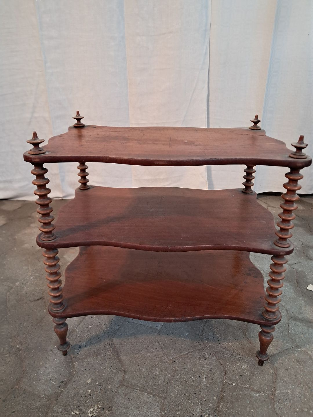 Etager i massivt mahogni og bøgetræ, fra 1900erne. Den har brugsspor og små defekter. Højde 51cm Bredde 34cm Længde 50cm Emne nummer: 91152