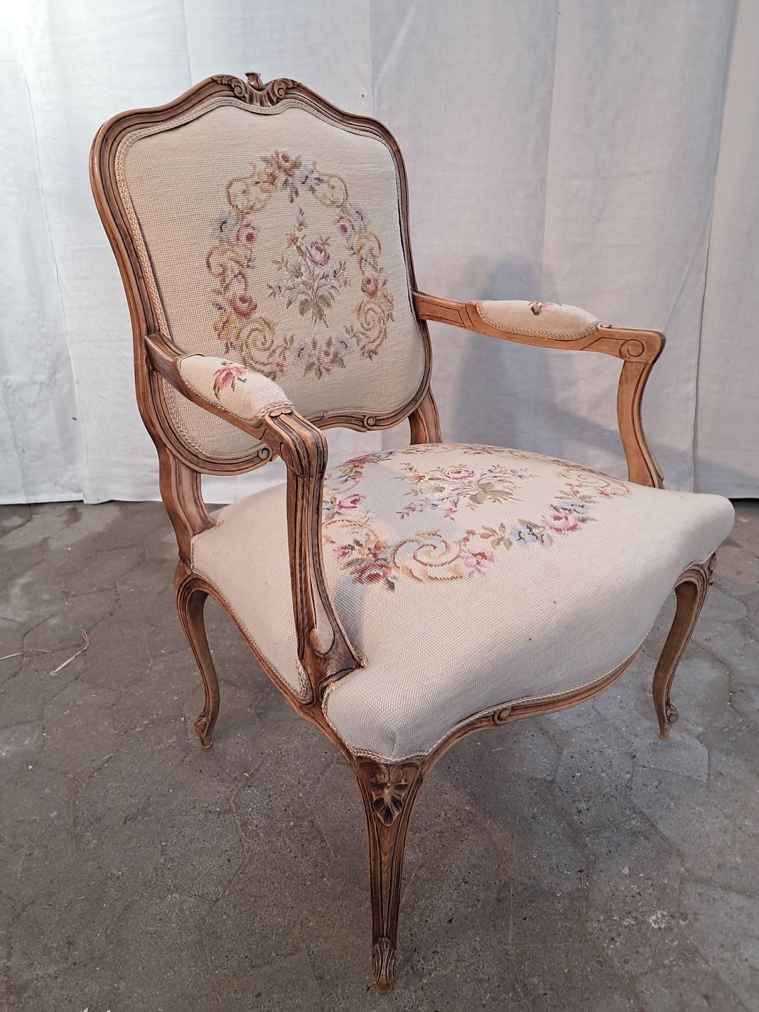 Rokokostol i massivt bøgetræ, fra 1950erne. Den har små brugsspor. Ryghøjde 90cm Sædehøjde 42cm Emne nummer: 91165