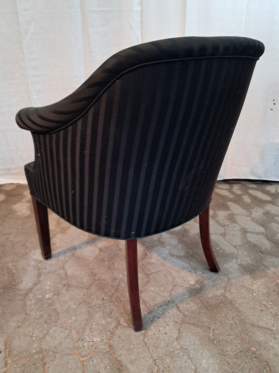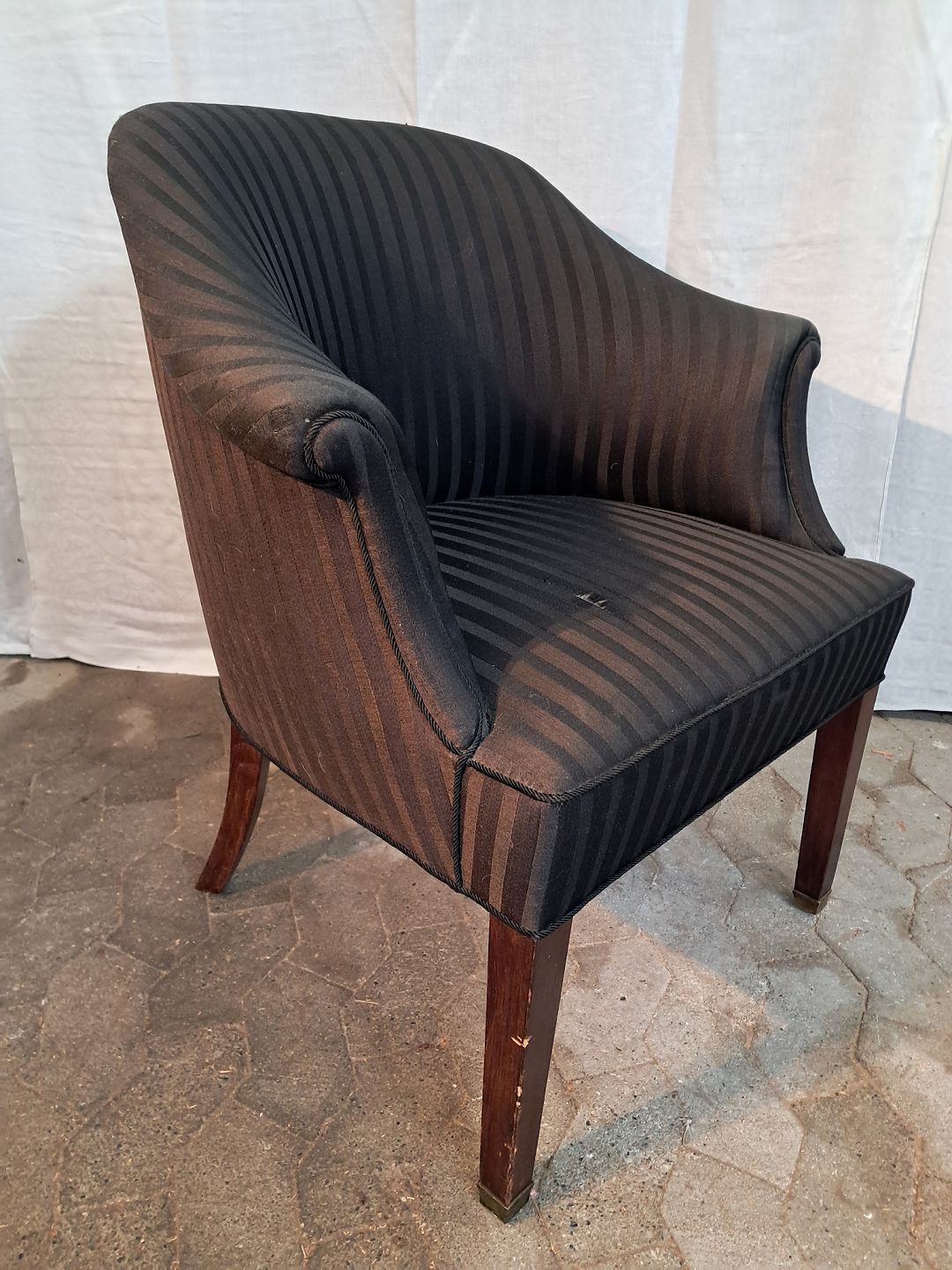 Overpolstret lænestol med mahogni ben, fra 1910erne. Den har brugsspor og et slid-hul. Ryghøjde 88cm Sædehøjde 45cm Emne nummer: 91224