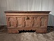 Kiste i massivt egetræ, fra 1860erne. Den har brugsspor og små defekter. Højde 78cm Bredde 148cm Dybde 55cm Emne nummer: 91248