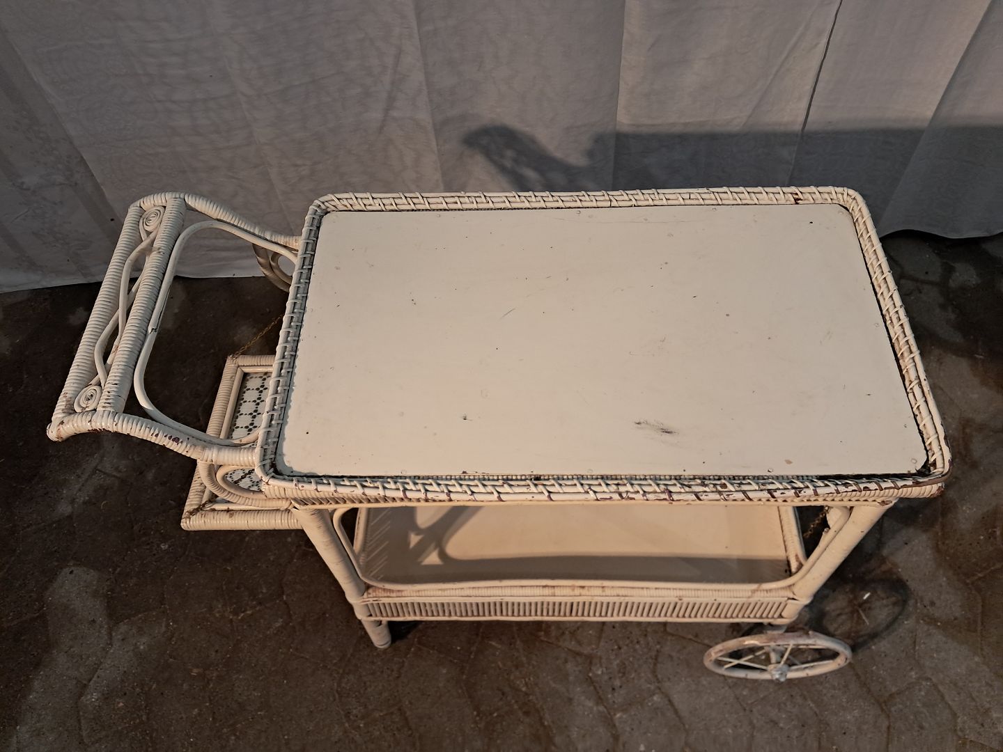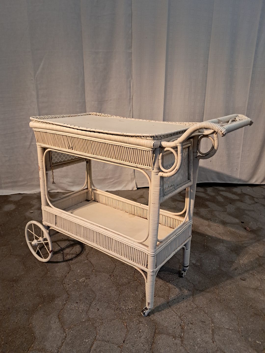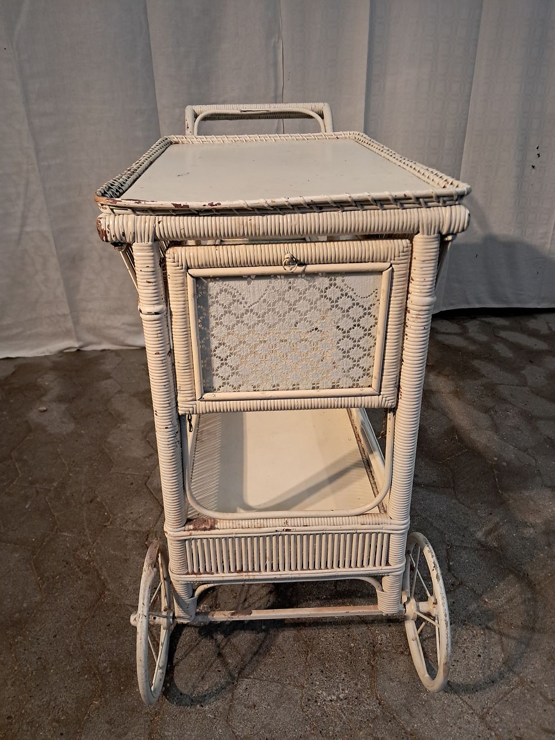 Malet kurve rullebord, fra 1920erne. Det har brugsspor og den en hylde mangler 2 kroge.(se foto) Højde 71cm Bredde 41cm Længde 87cm Emne nummer: 91275