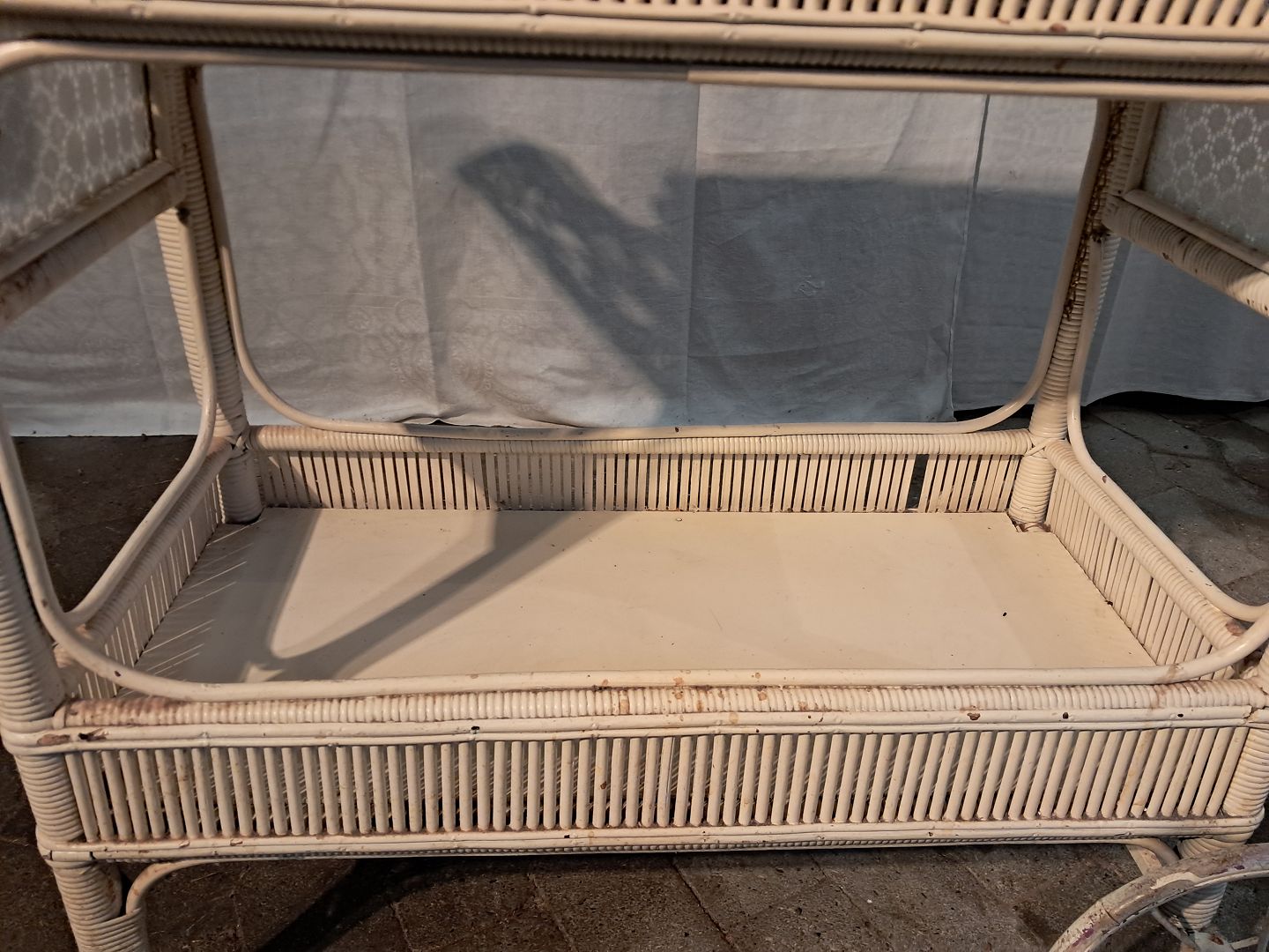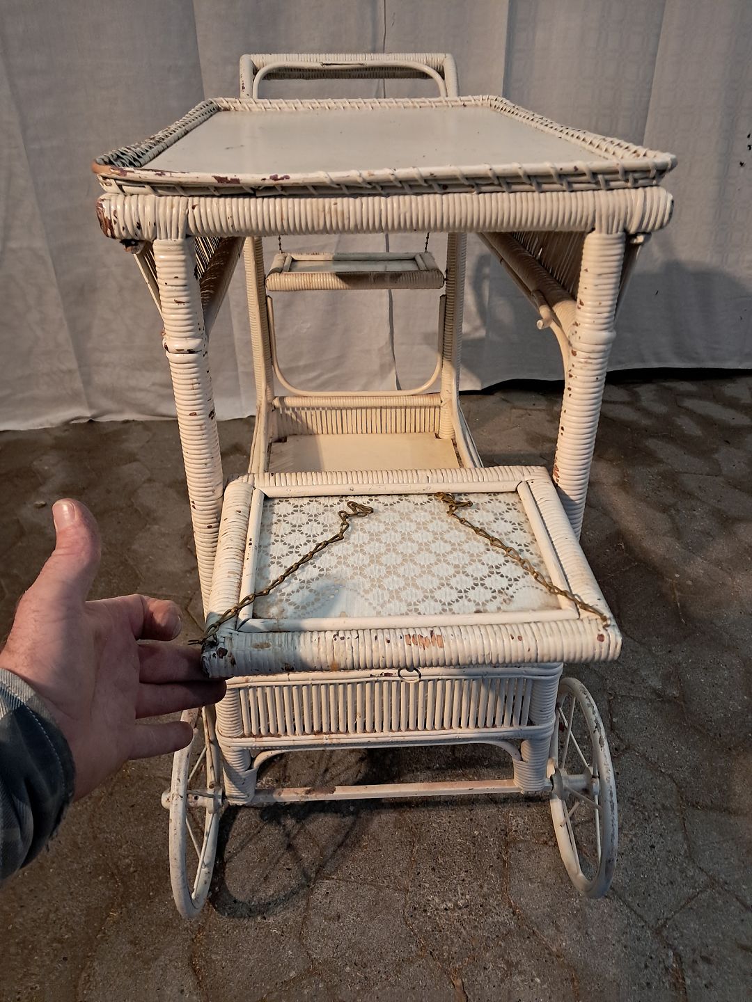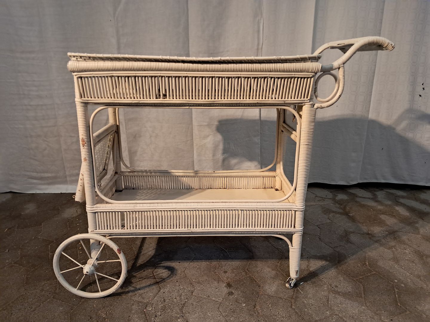 Malet kurve rullebord, fra 1920erne. Det har brugsspor og den en hylde mangler 2 kroge.(se foto) Højde 71cm Bredde 41cm Længde 87cm Emne nummer: 91275
