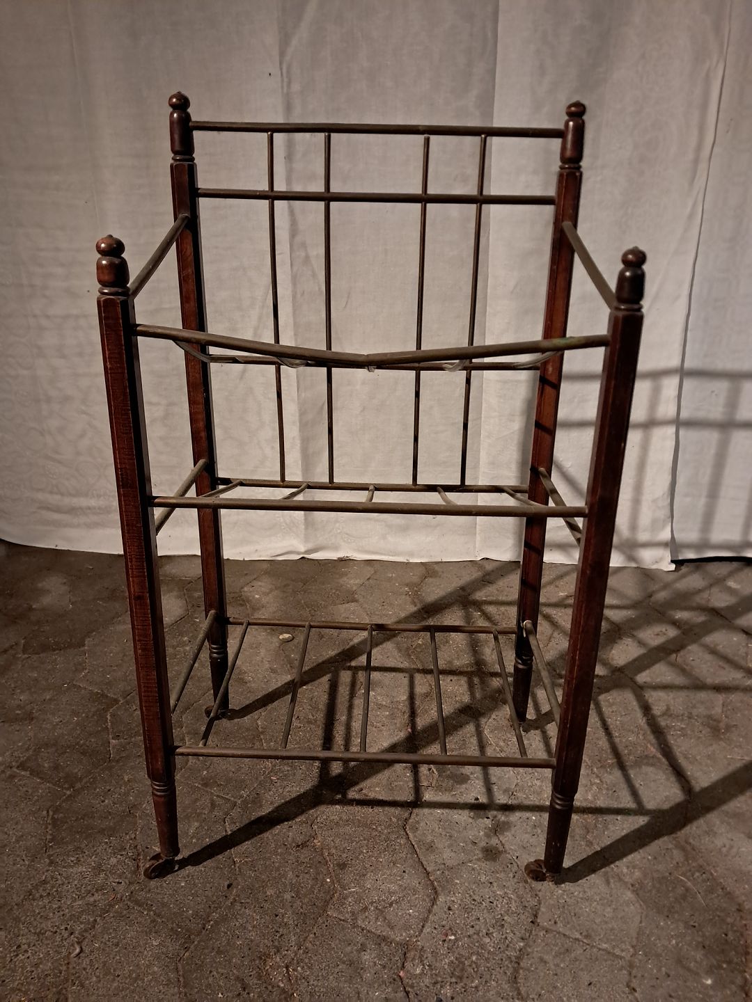 Nodestativ i metal og bøgetræ, fra 1920erne.
