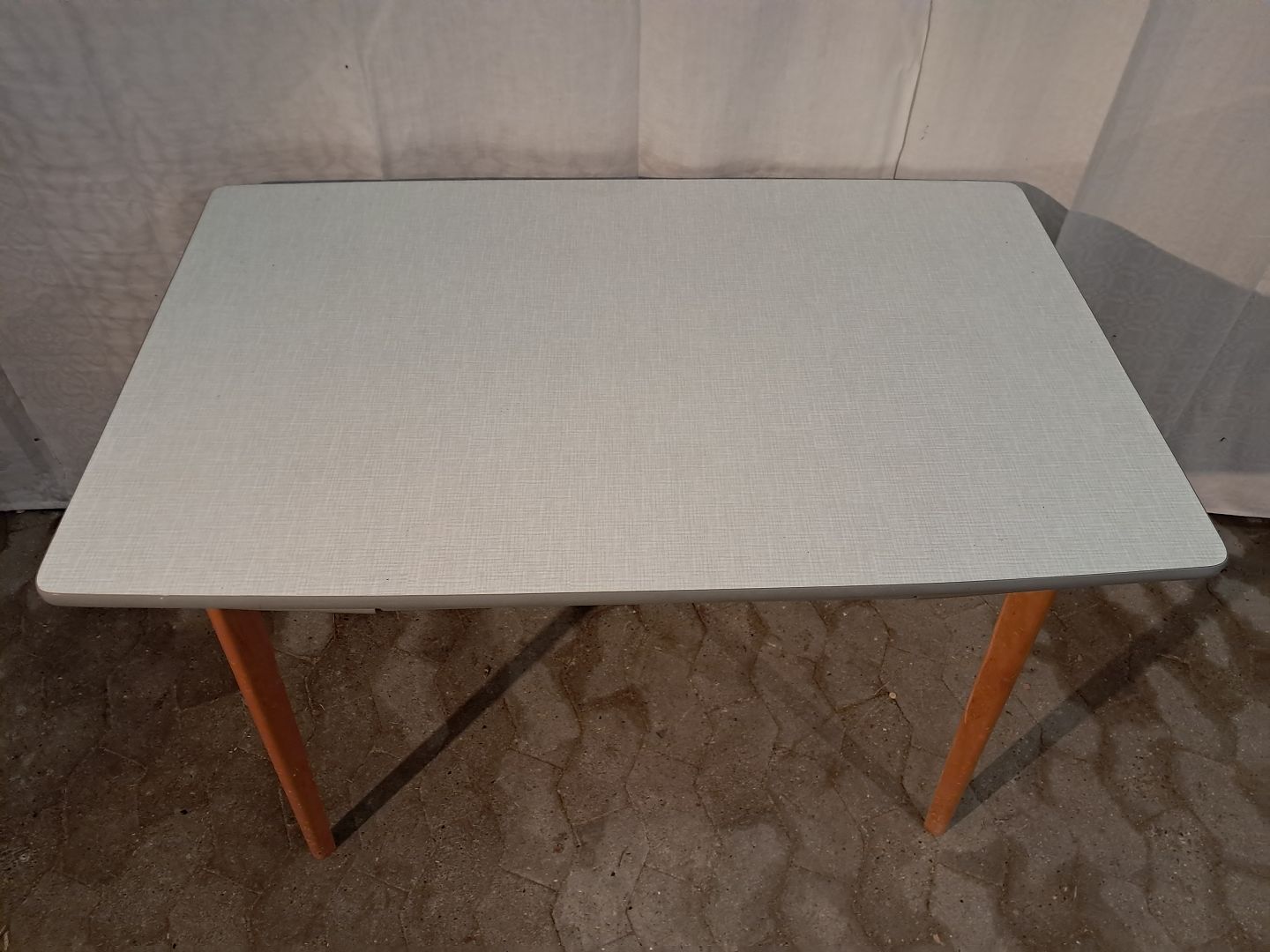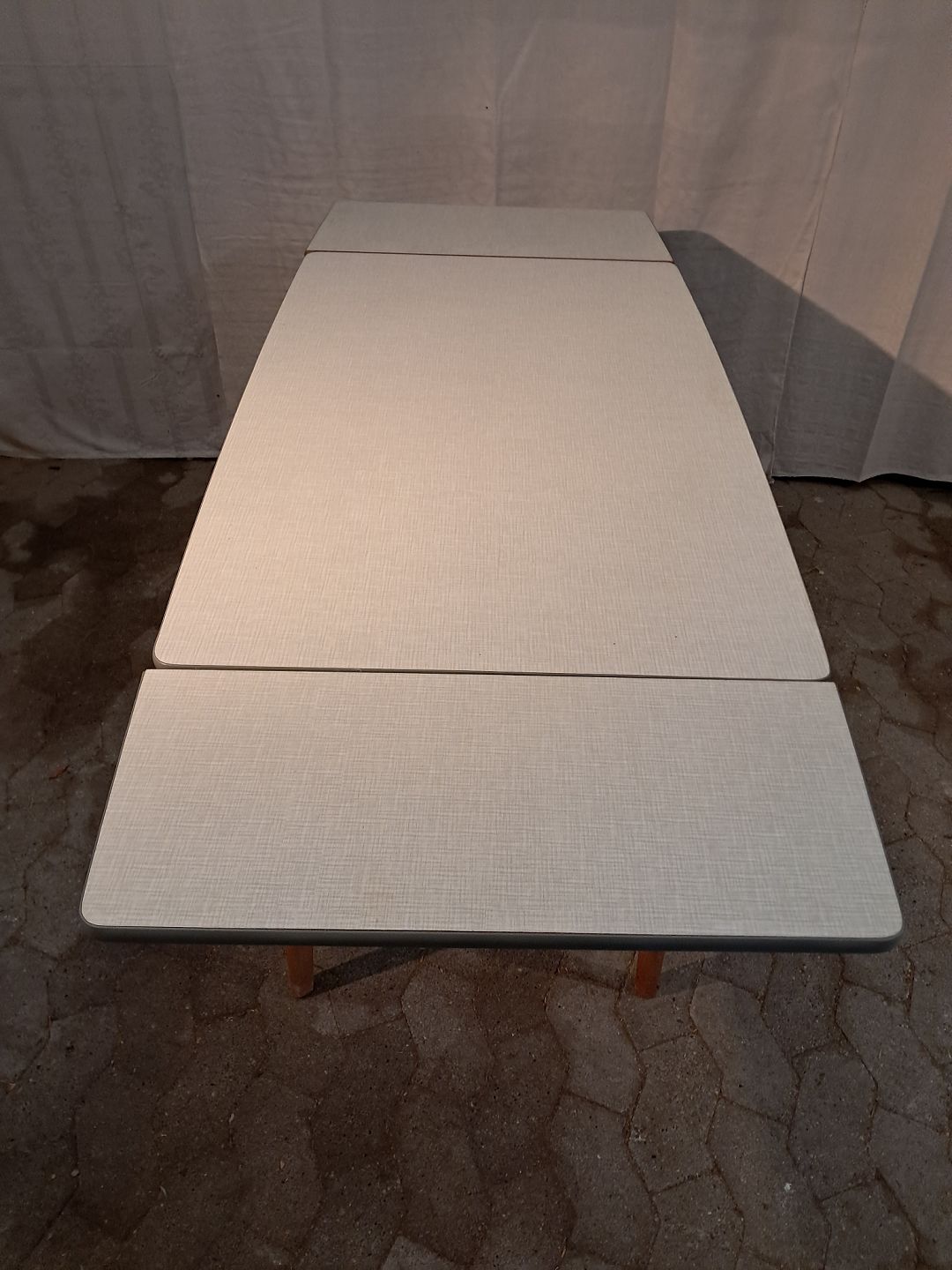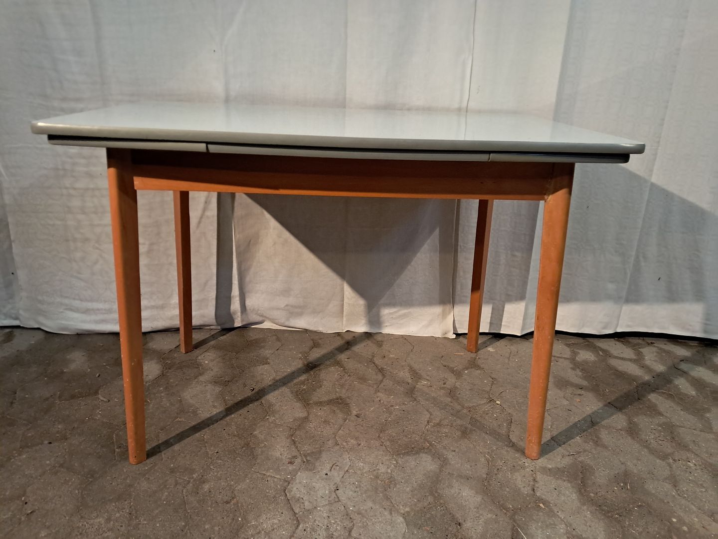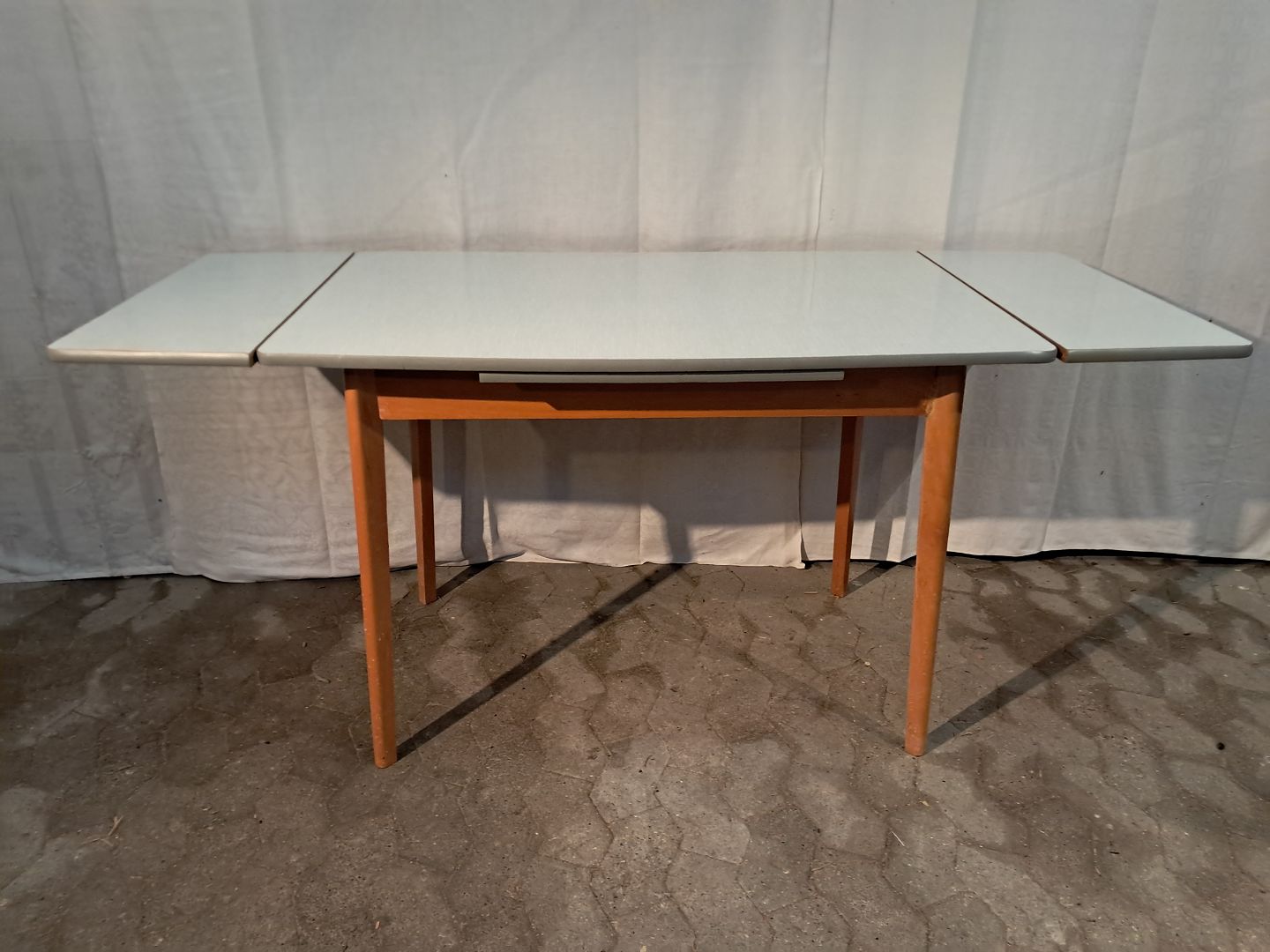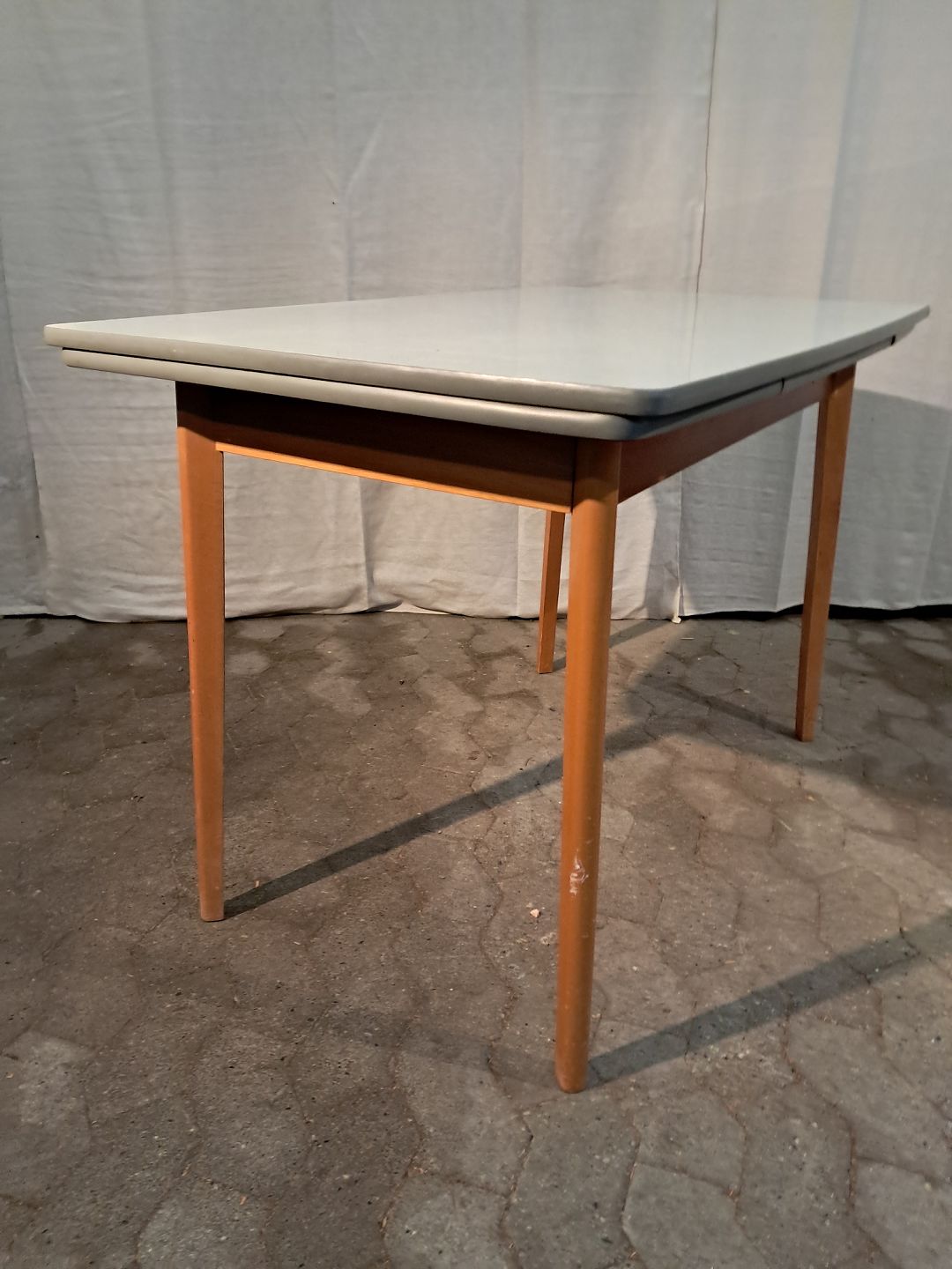 Bord i massivt bøgetræ med formikaplade og hollandsk udtræk, fra 1960erne.