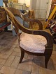 Armstol i mahogni med sæde betrukket i stof. Produceret ca. år 1900 Brugt stand, fremstår med kraftig brugsspor i form af finerskader på ryg (se foto) Mål: H. 85 cm. B. 58 cm. D. 63 cm. SH. 47 cm. Emne nummer: 80651