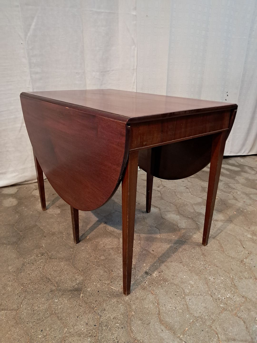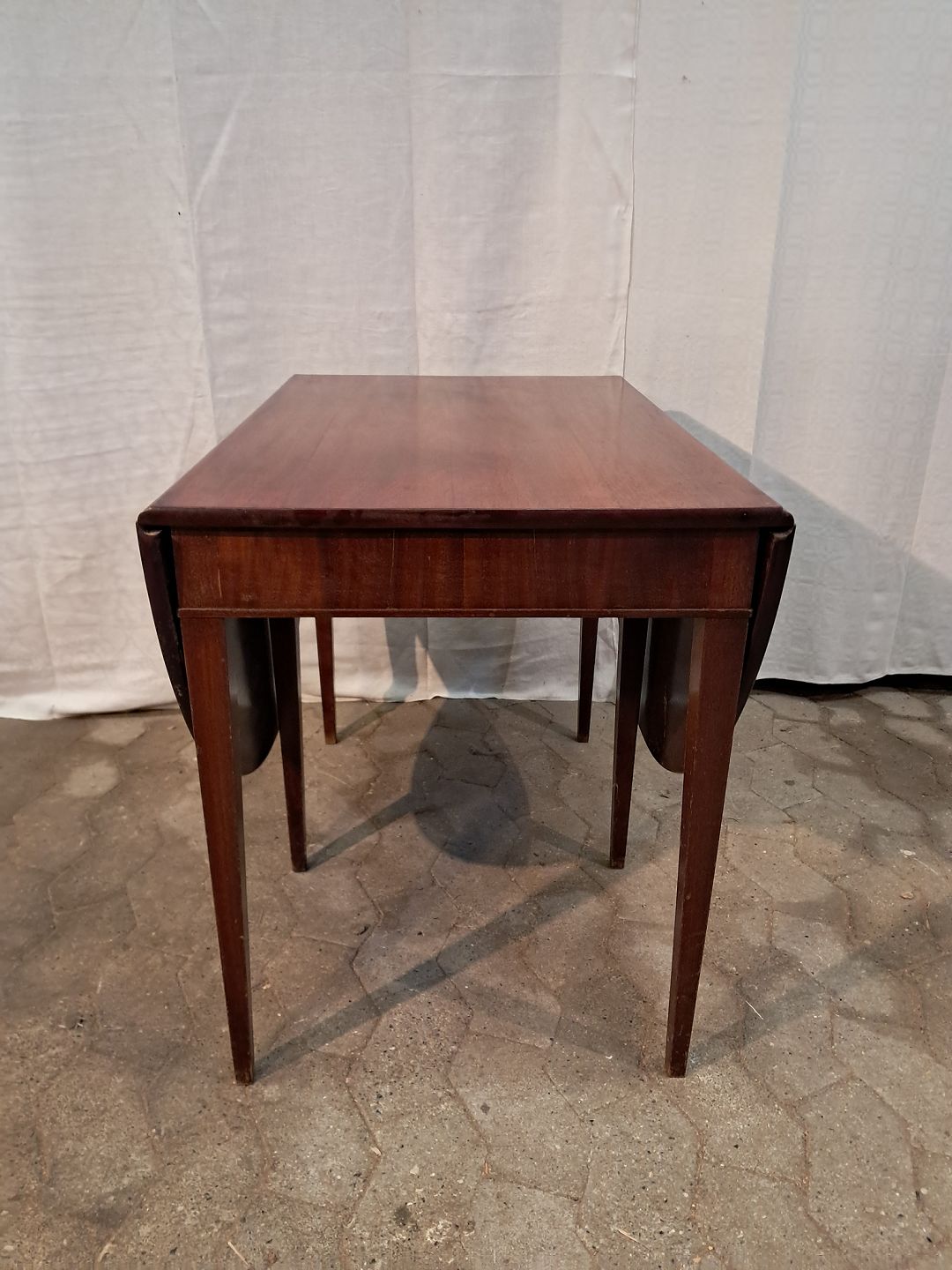 Bord i fineret mahogni, fra 1920erne. Det har brugsspor. Højde 65cm Bredde 84cm Længde 54cm Længde med klapper 136cm Emne nummer: 91369