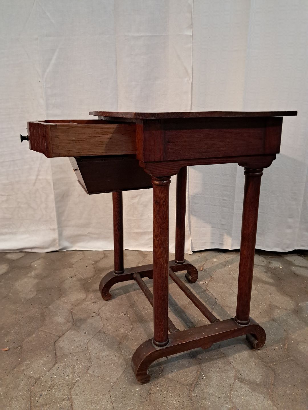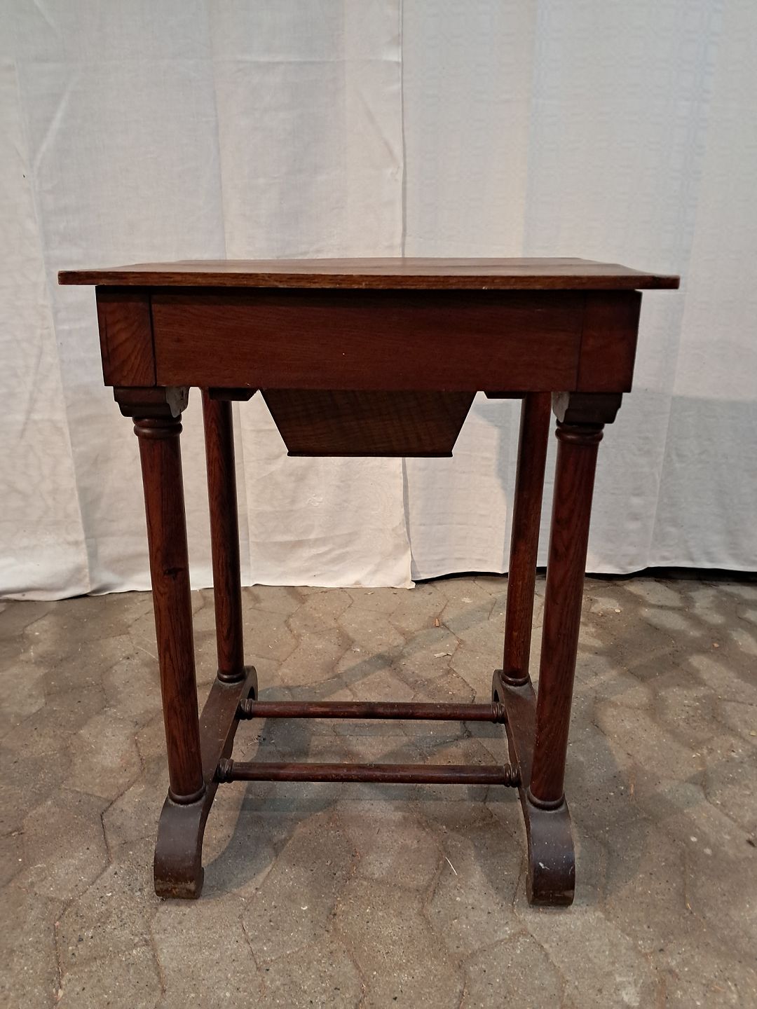 Sybord i massivt egetræ, fra 1900erne. Det har brugsspor. Højde 75cm Bredde 58cm Dybde 47cm Emne nummer: 91405