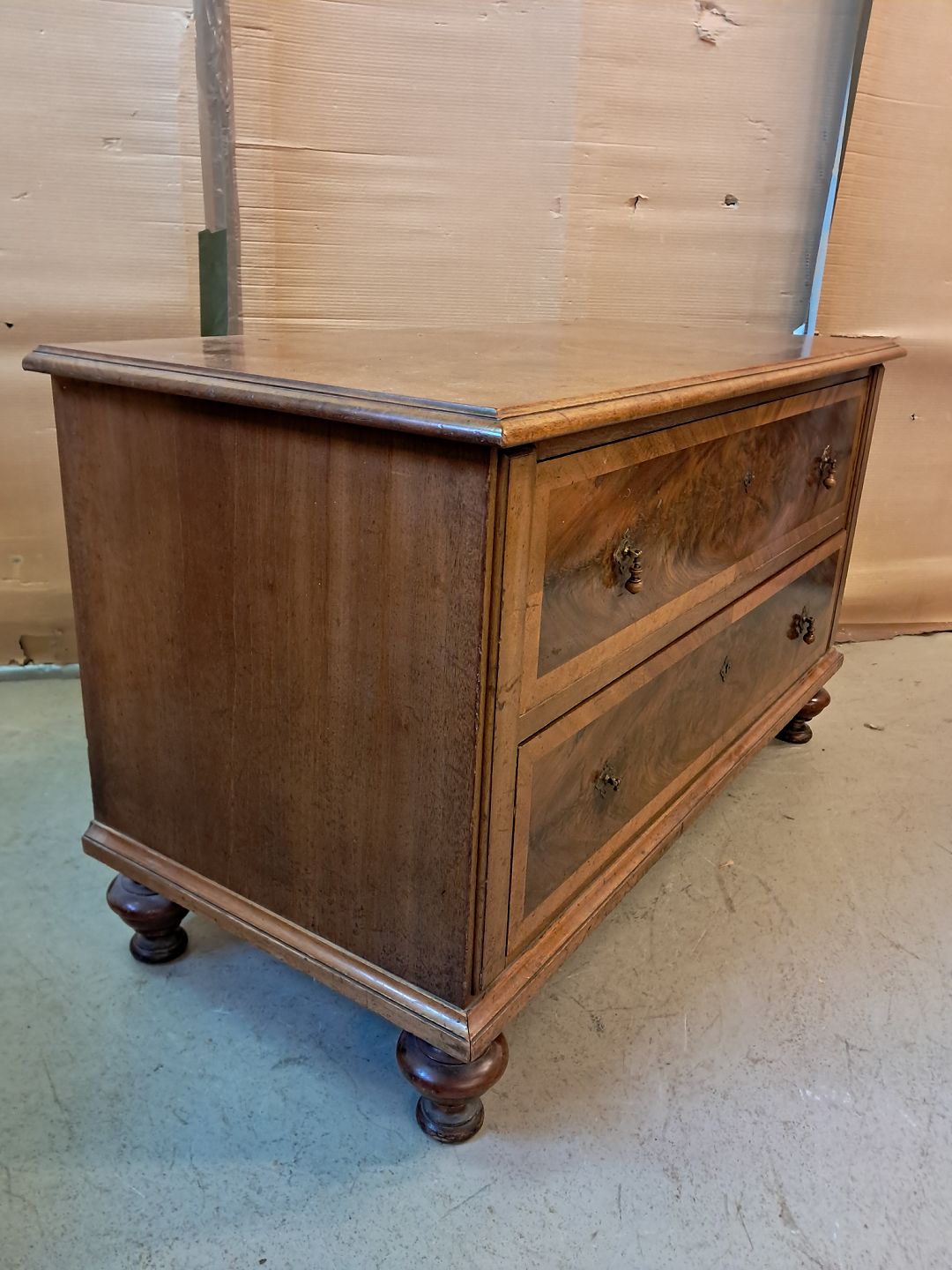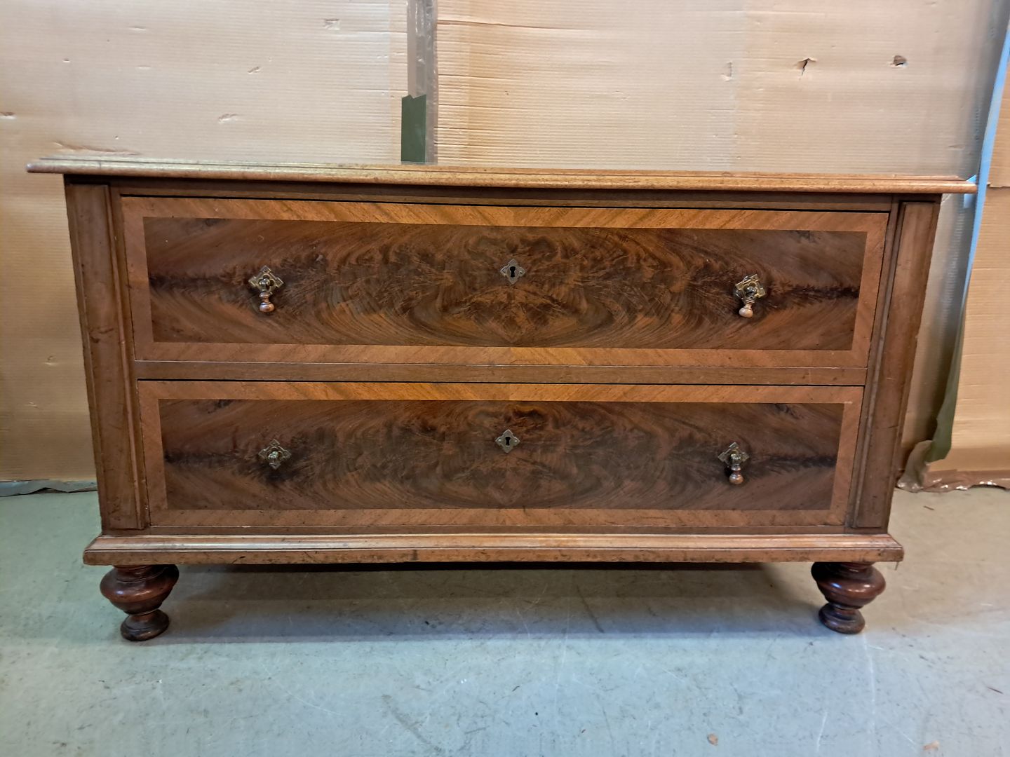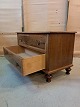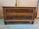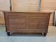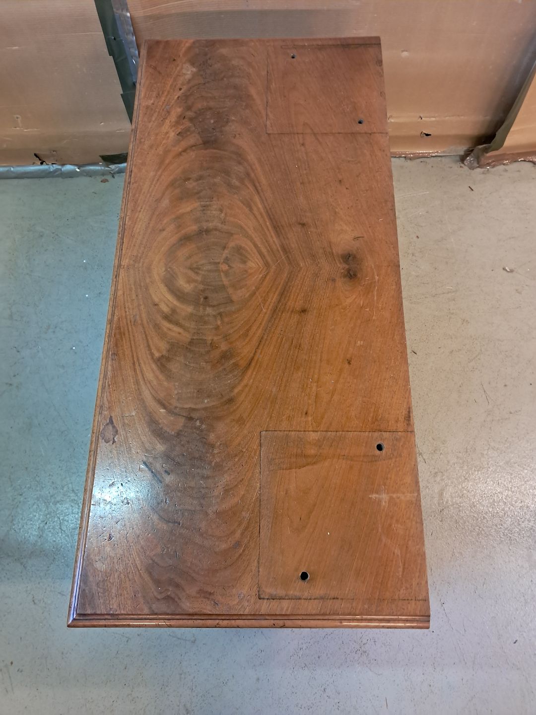 Den har brugsspor, mangler et håndtag og har hulller i pladen.