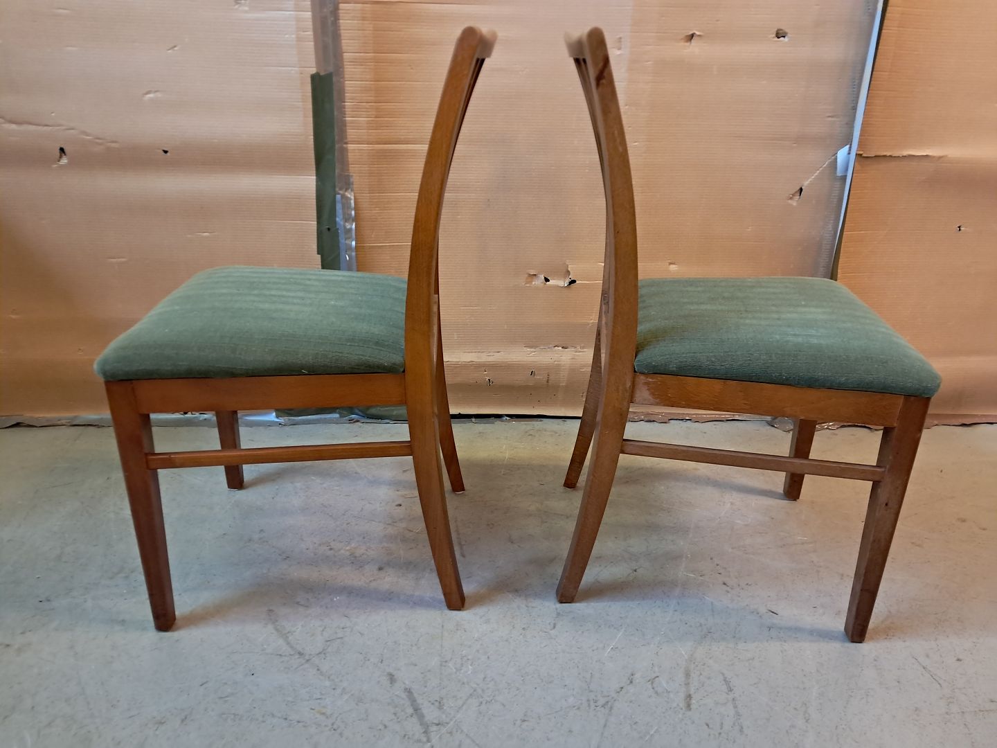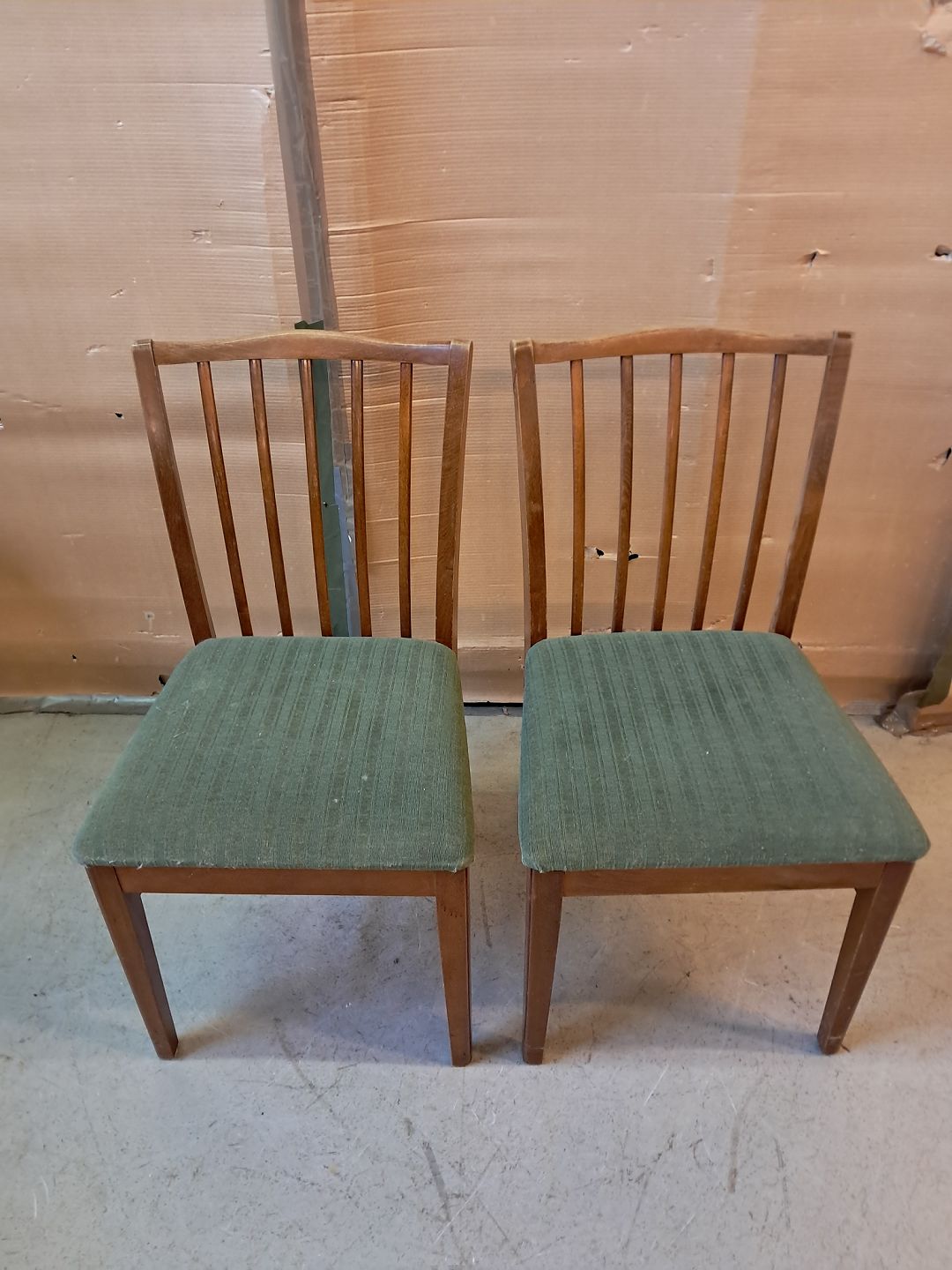 2 Stole i massivt bøgetræ, fra 1950erne. De har brugsspor. Ryghøjde 86cm Sædehøjde 46cm Emne nummer: 76075