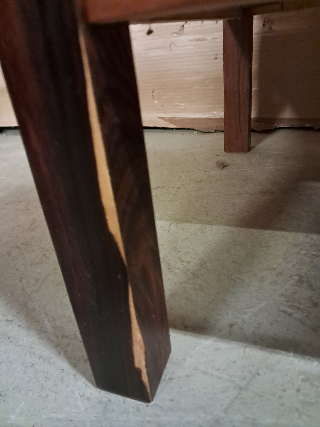 Den har brugsspor og defekt finer på venstre ben.