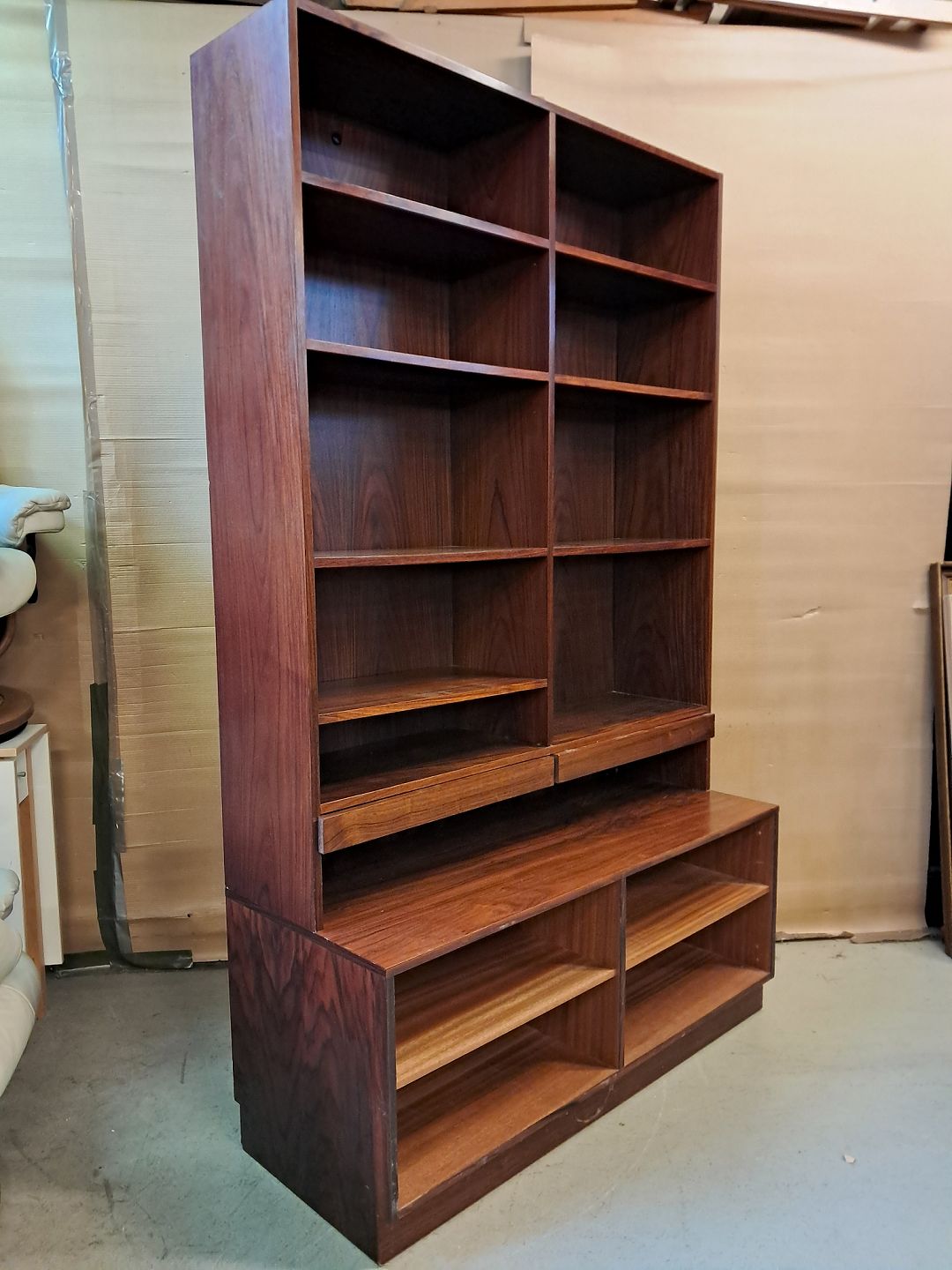 Reolsektion i fineret palisander, fra 1960erne. Den har brugsspor og defekt finer på siden. (se foto) Højde 200cm Bredde 121cm Dybde 48cm Emne nummer: 76105