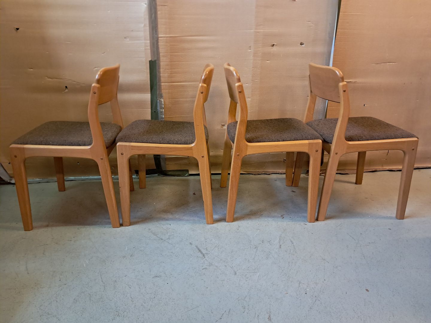 2 Stole i massivt egetræ, fra 1980erne. De har små brugsspor. Ryghøjde 79cm Sædehøjde 45cm Emne nummer: 76212