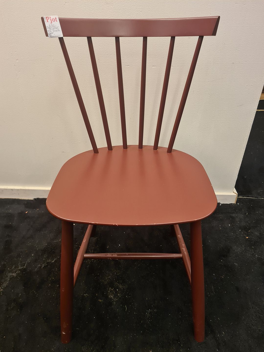 Poul Volther pindestol i lakeret bøg, produceret hos FDB af nyere dato. Brugt stand, fremstår med slitage og gnave mærker på tværpind. Mål: H. 79 cm. B. 41 cm. D. 46 cm. SH. 45 cm. Emne nummer: 80698
