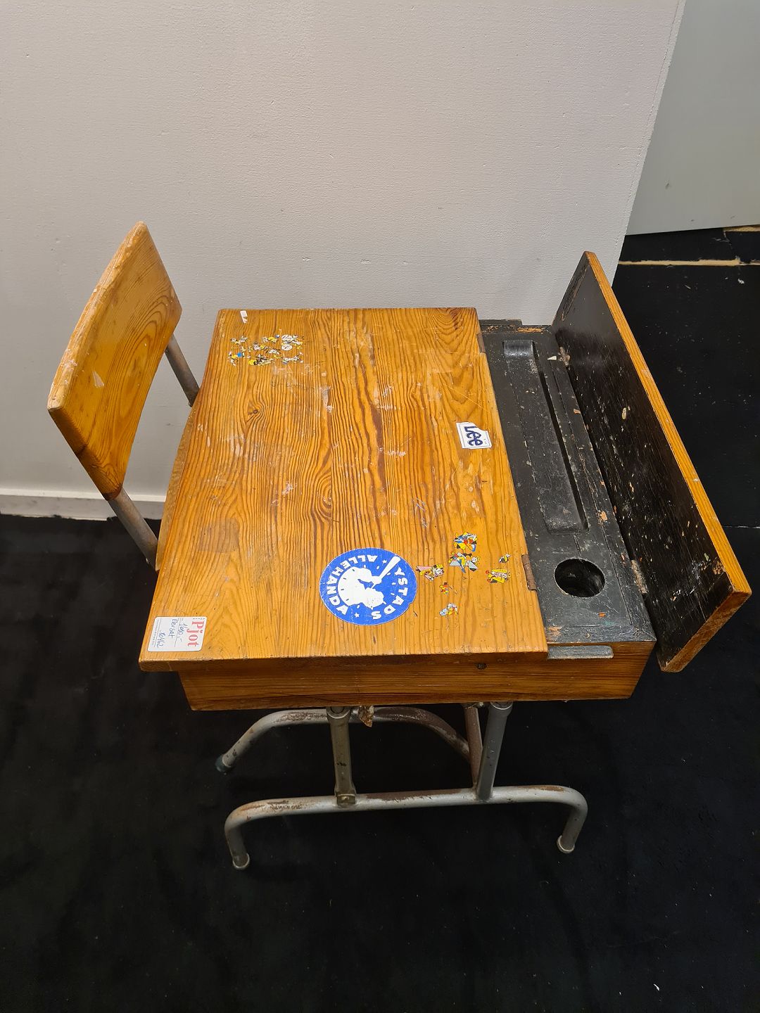 Svensk produceret skoleelevsæt fra 1960'erne i fyr og metal. Fremstår med brugsspor i form af overfladeslid og klistermærker på træet og overfladerust på metallet. Ellers ganske stabilt og udmærket funktionsdygtigt.