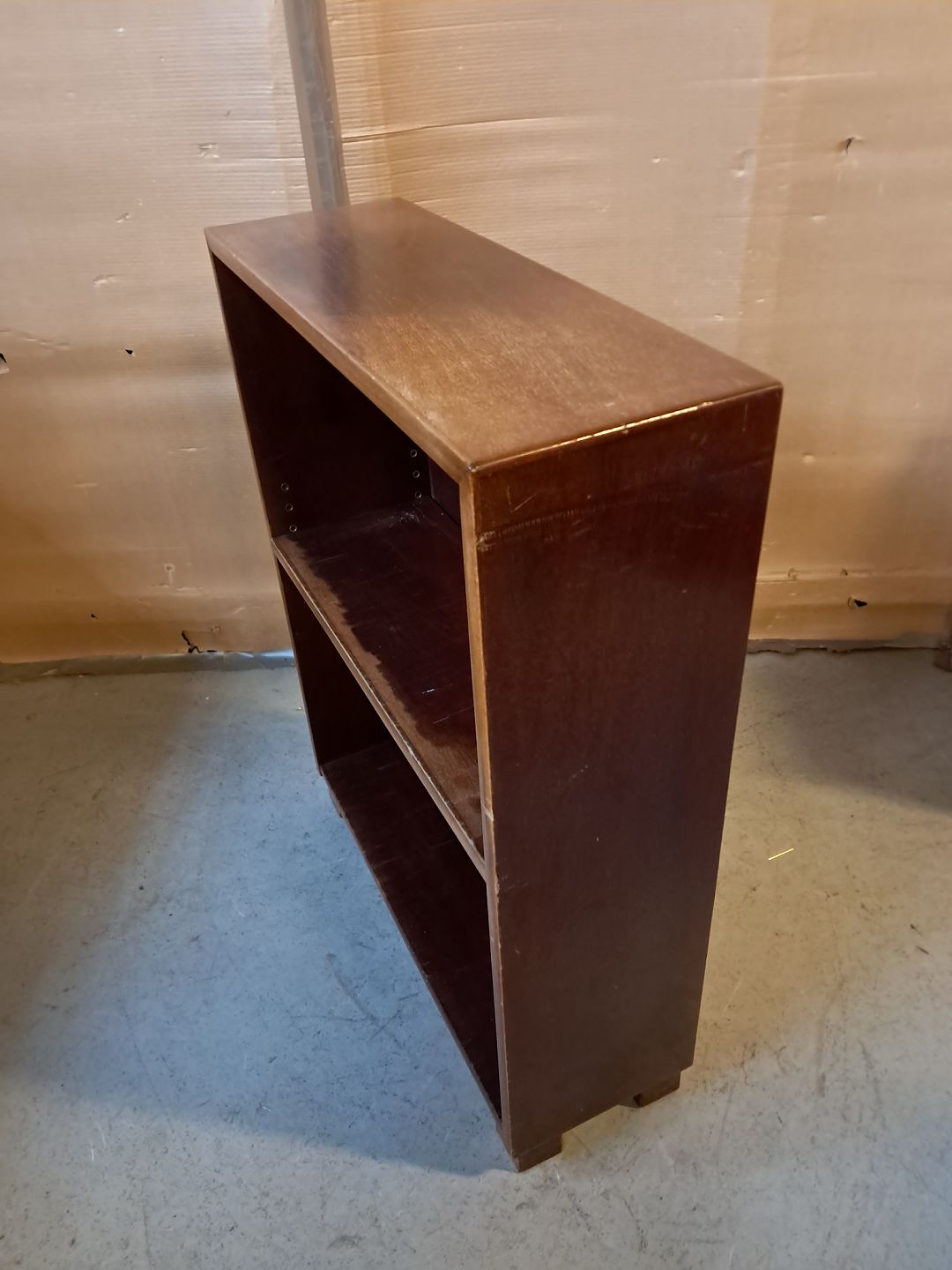Reol i fineret bøgetræ, fra 1950erne. Den har brugsspor. Højde 90cm Bredde 70cm Dybde 24cm Emne nummer: 76323