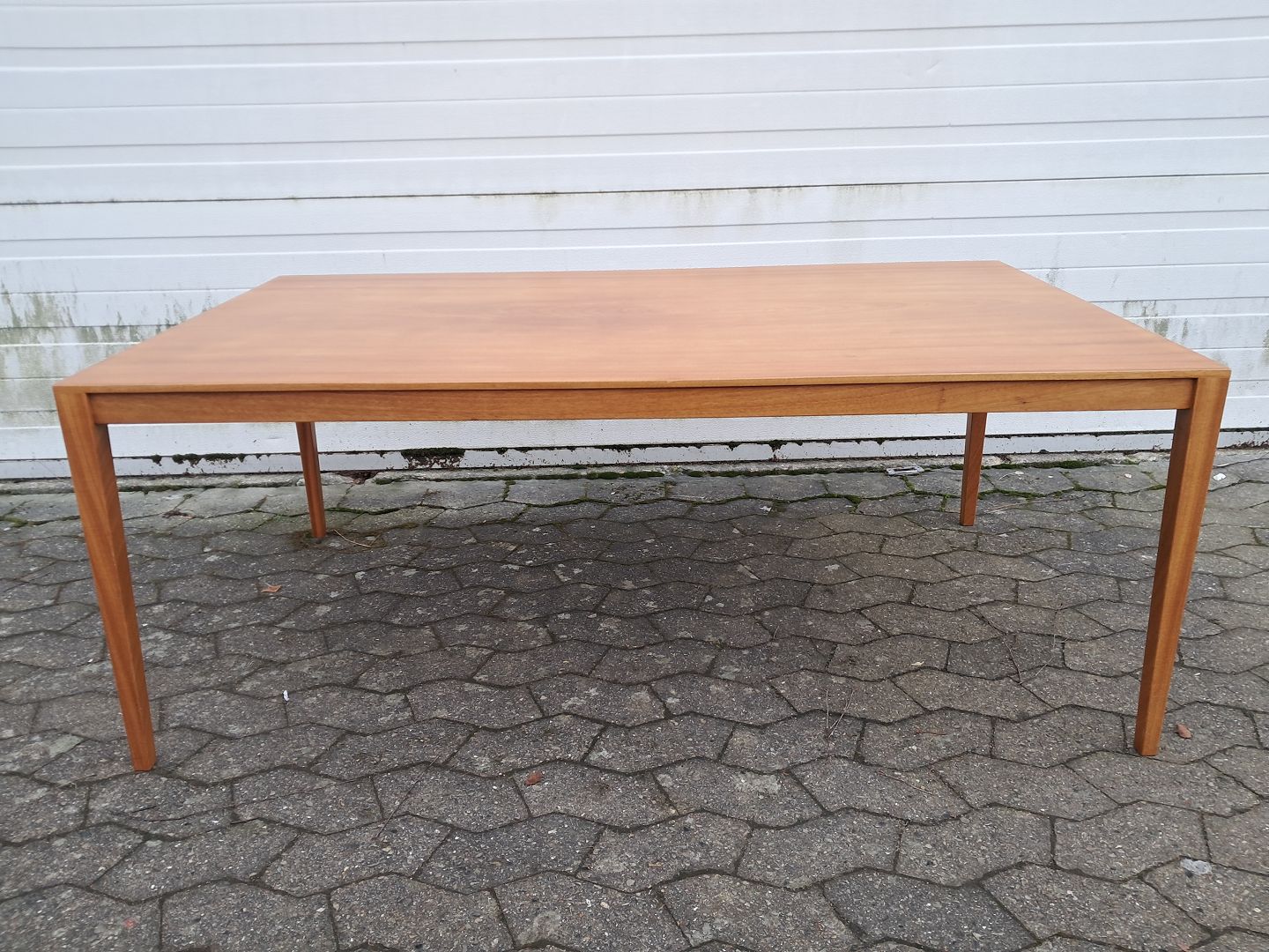 Sofabord i fineret mahogni, fra 1980erne. Det har små brugsspor. Højde 55cm Bredde 80cm Længde 140cm Emne nummer: 76334