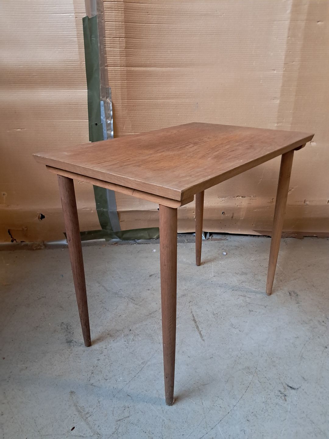 Sidebord i fineret og massivt egetræ, fra 1960erne.