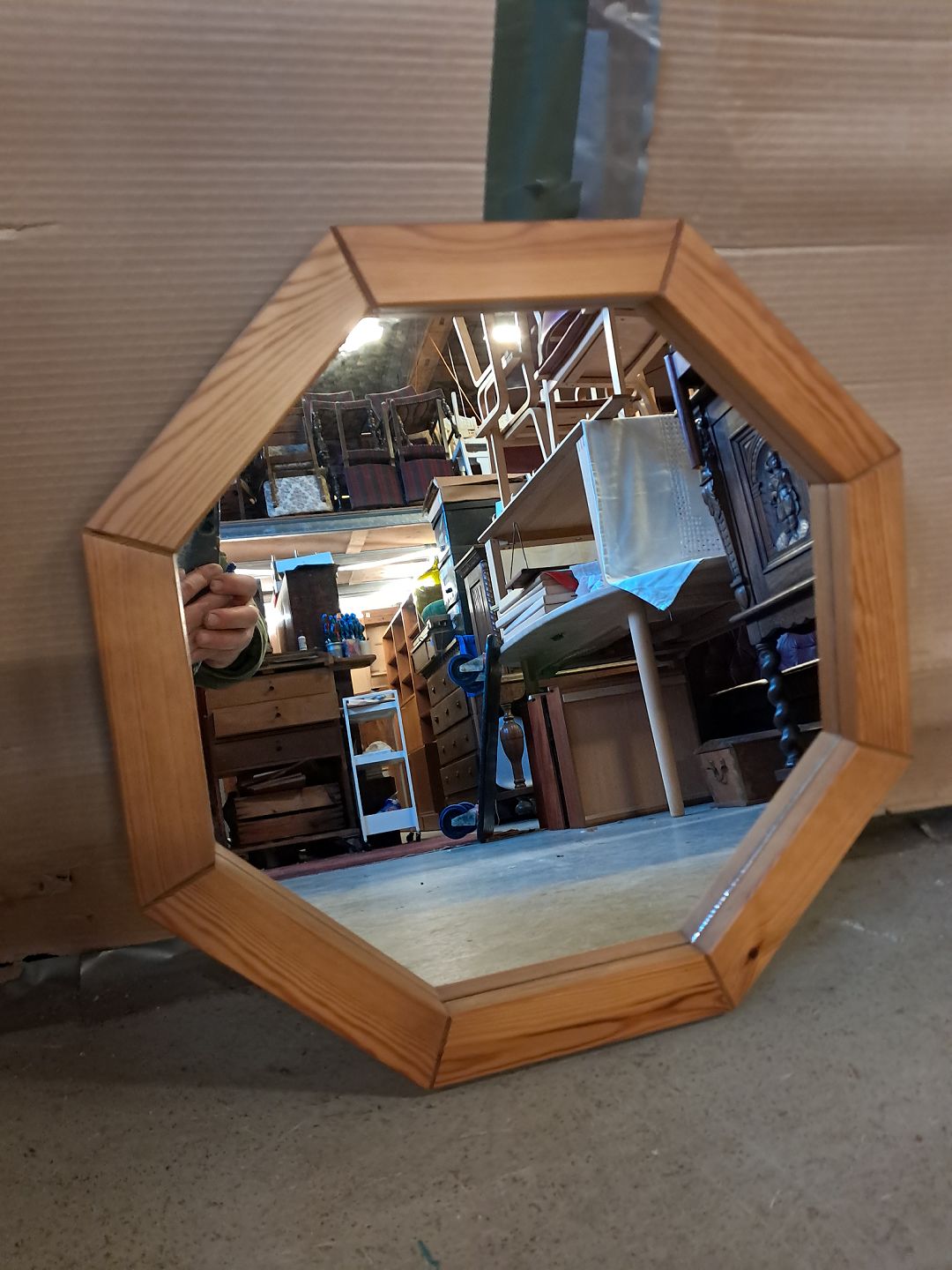 Spejl i massivt fyrretræ, fra 1990erne. Det har små brugsspor. Højde 48cm Bredde 48cm Emne nummer: 76500