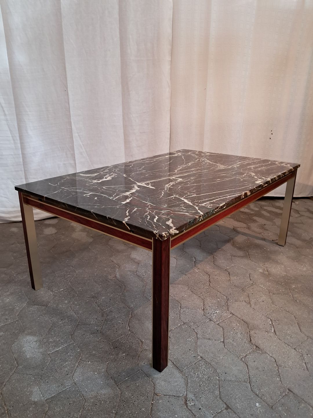 Sofabord i metal og marmor, fra 1990erne. Det har brugsspor. Højde 51cm Bredde 80cm Længde 127cm Emne nummer: 91466