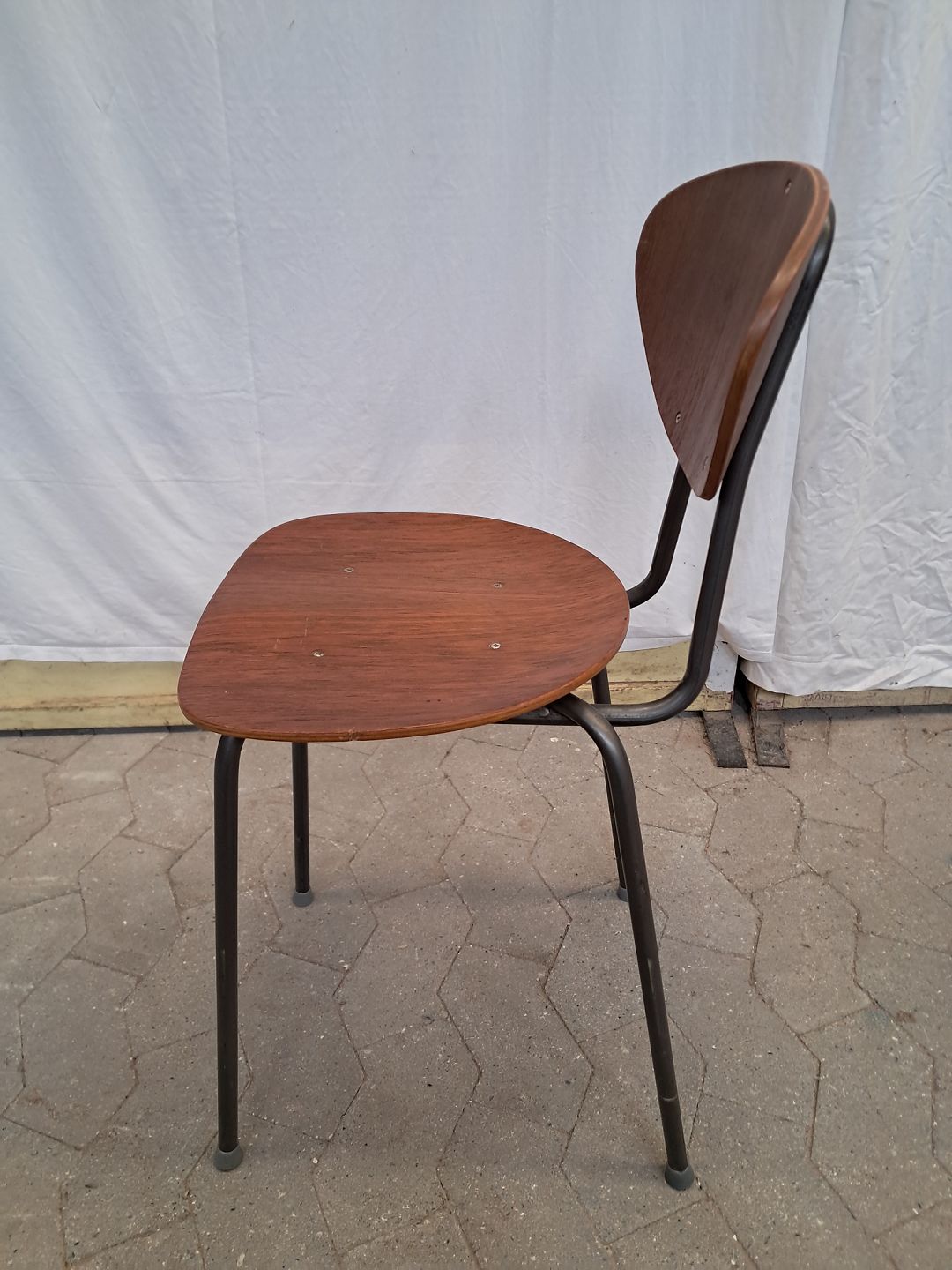Stol i fineret teaktræ og metal, fra 1970erne.