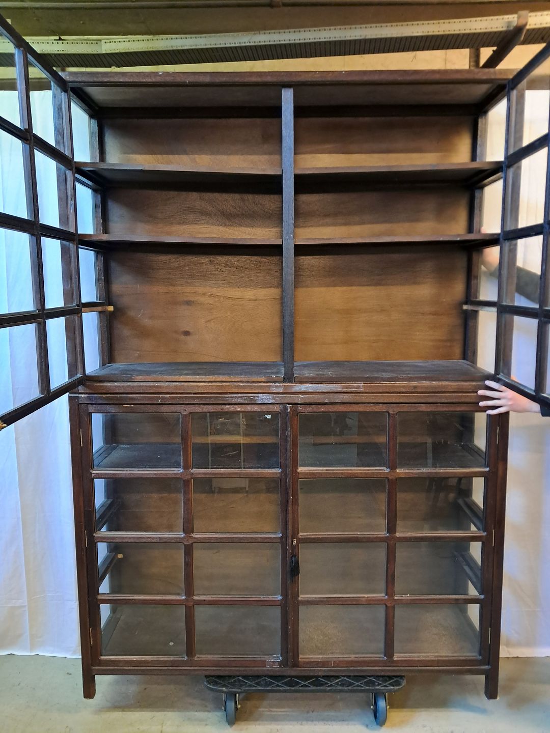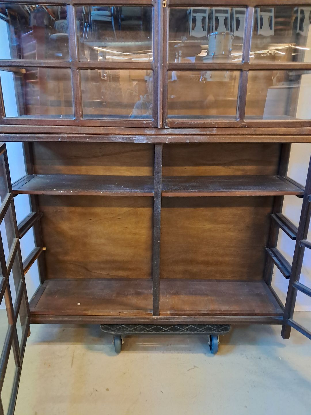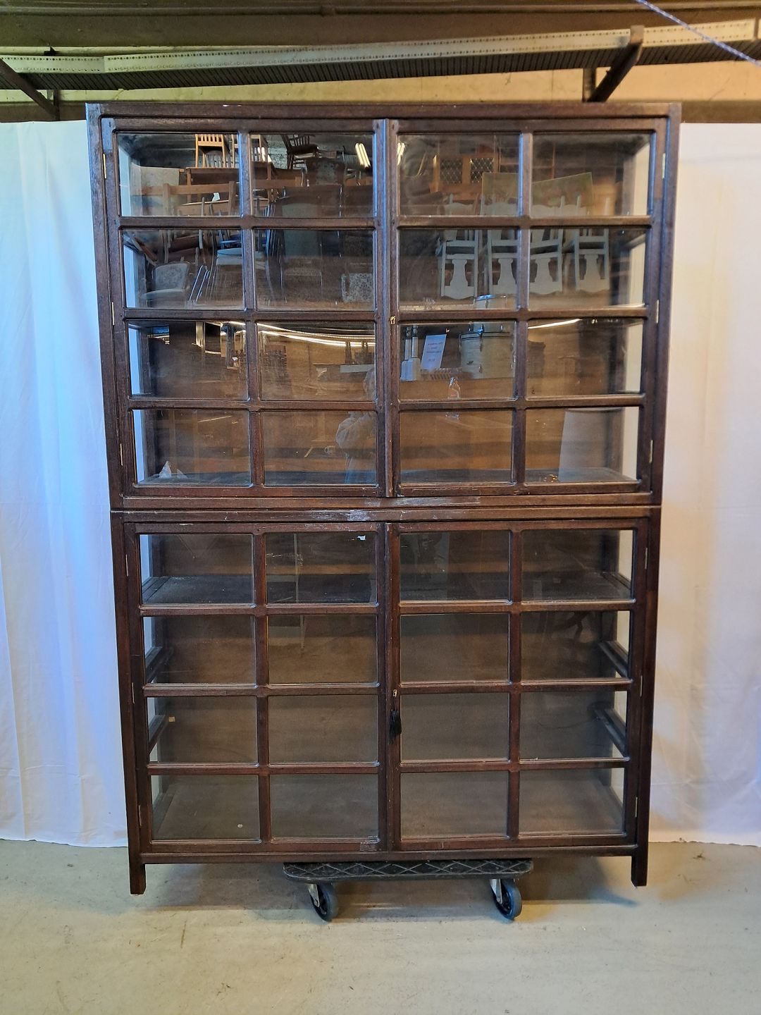 Vitrineskab i egetræ, fra 1990erne. Det har brugsspor og lågerne hænger lidt, dvs. at det drille når det skal lukkes. Det er to delt. Højde 232cm Bredde 168cm Dybde 42cm Emne nummer: 76632