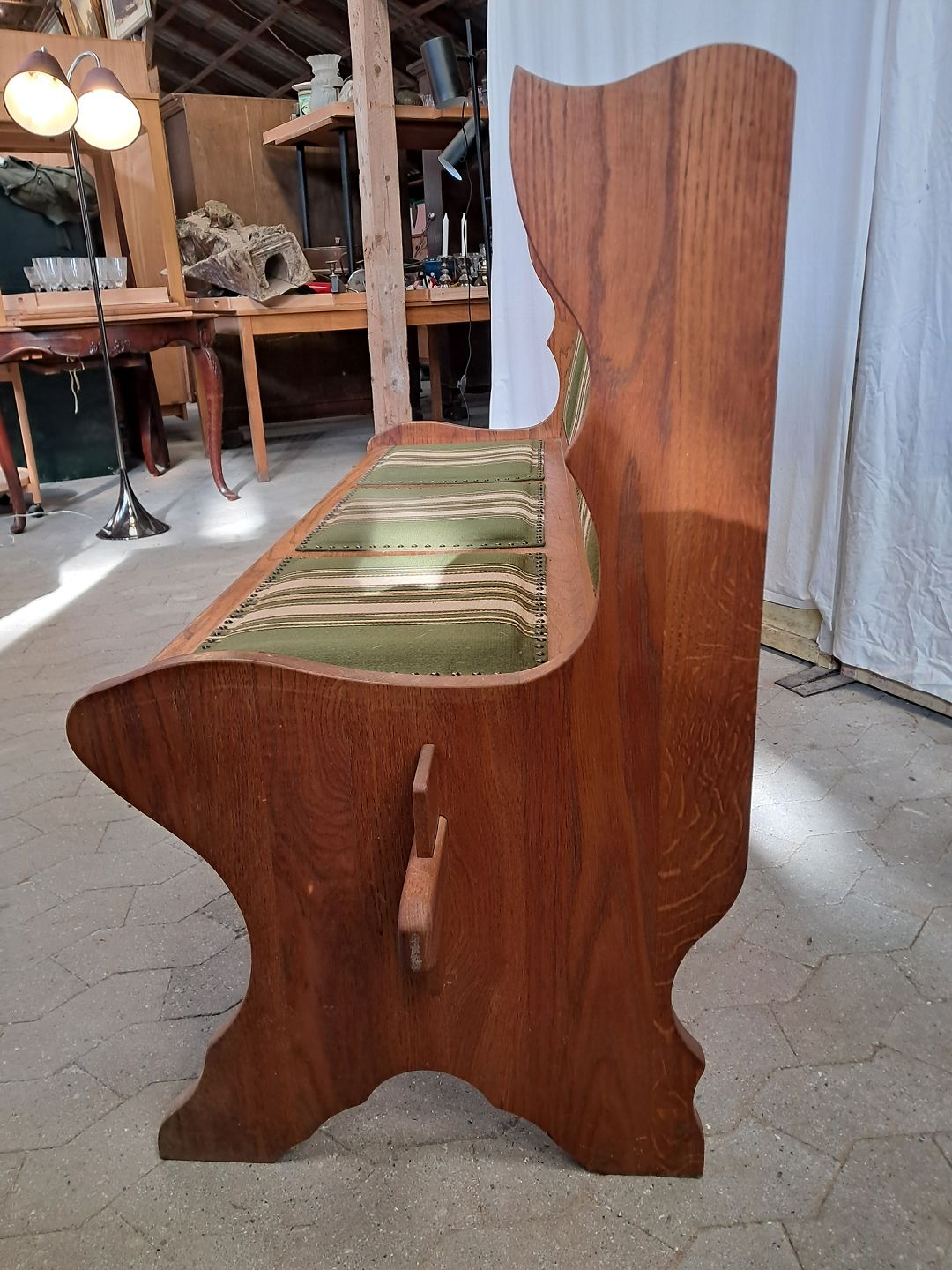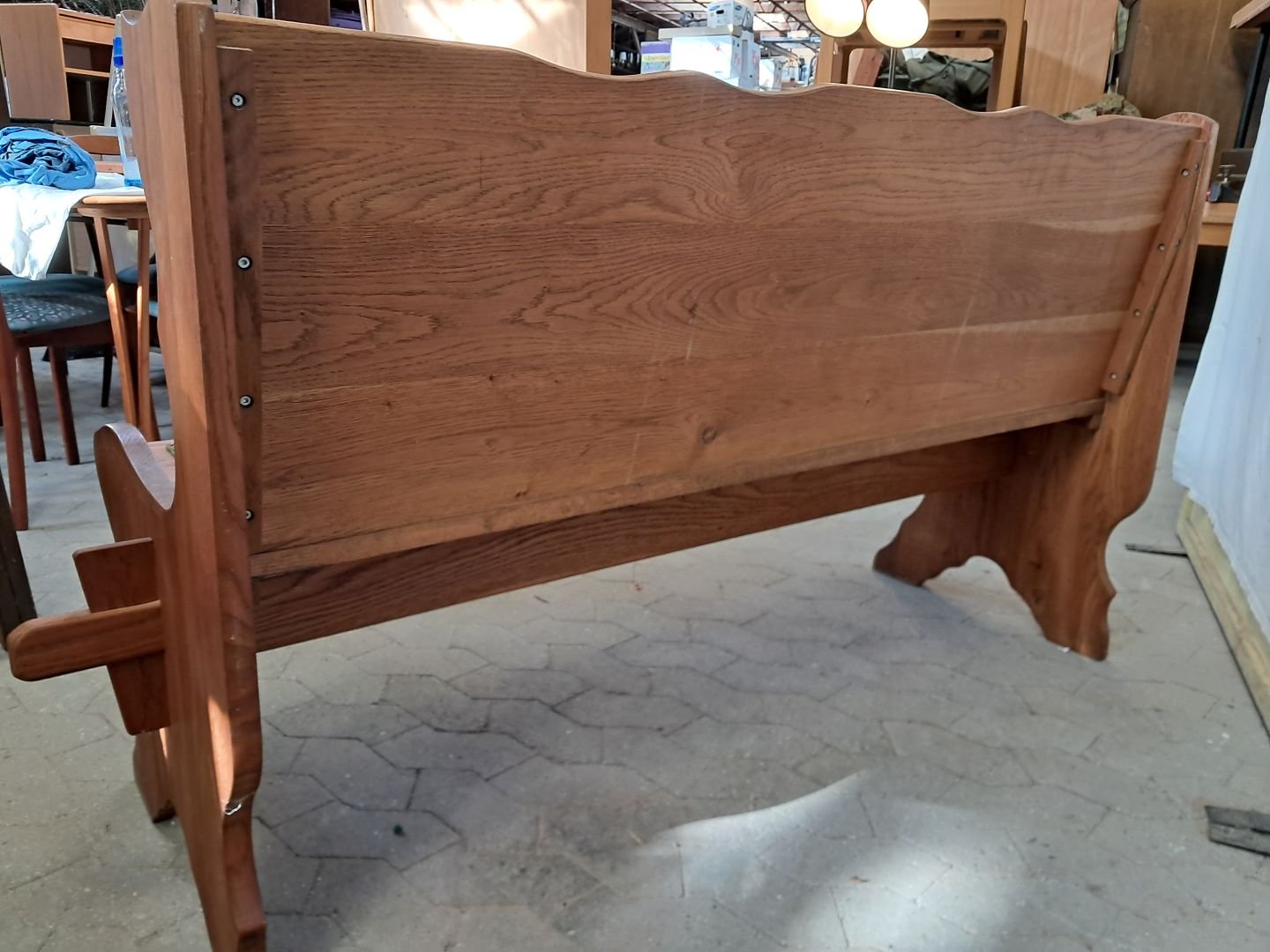 Bænk i massivt egetræ, fra 1980erne.