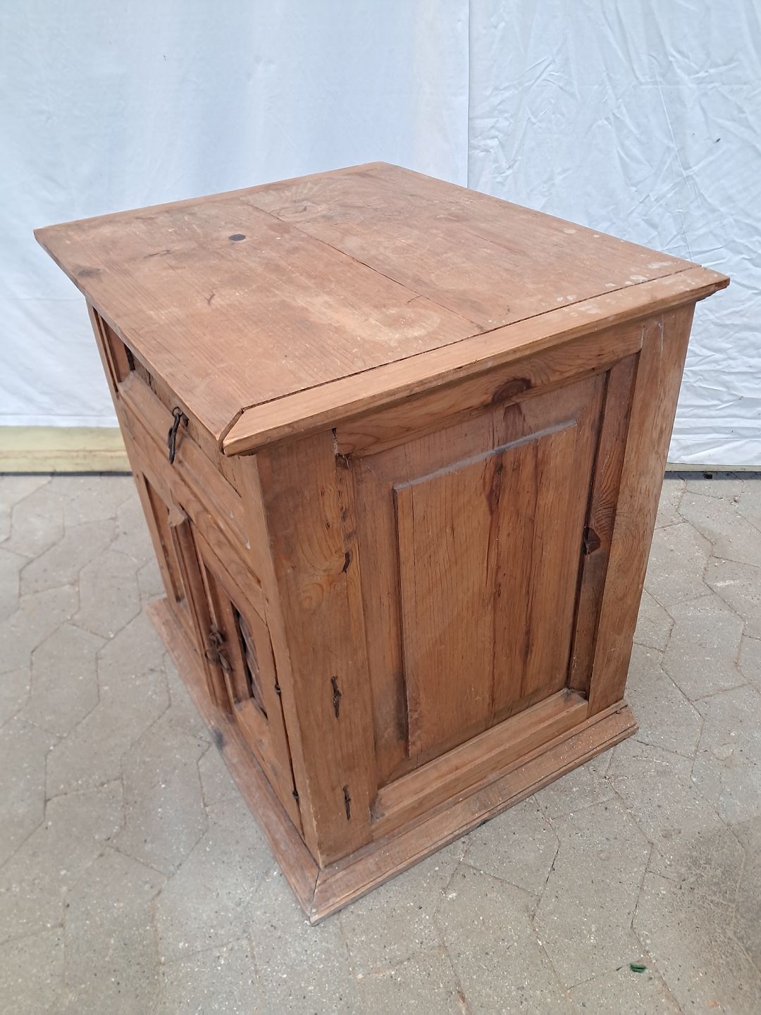 Skab i massivt træ, made in Mexico, fra 1990erne. Det har brugsspor. Højde 61cm Bredde 60cm Dybde 49cm Emne nummer: 91604