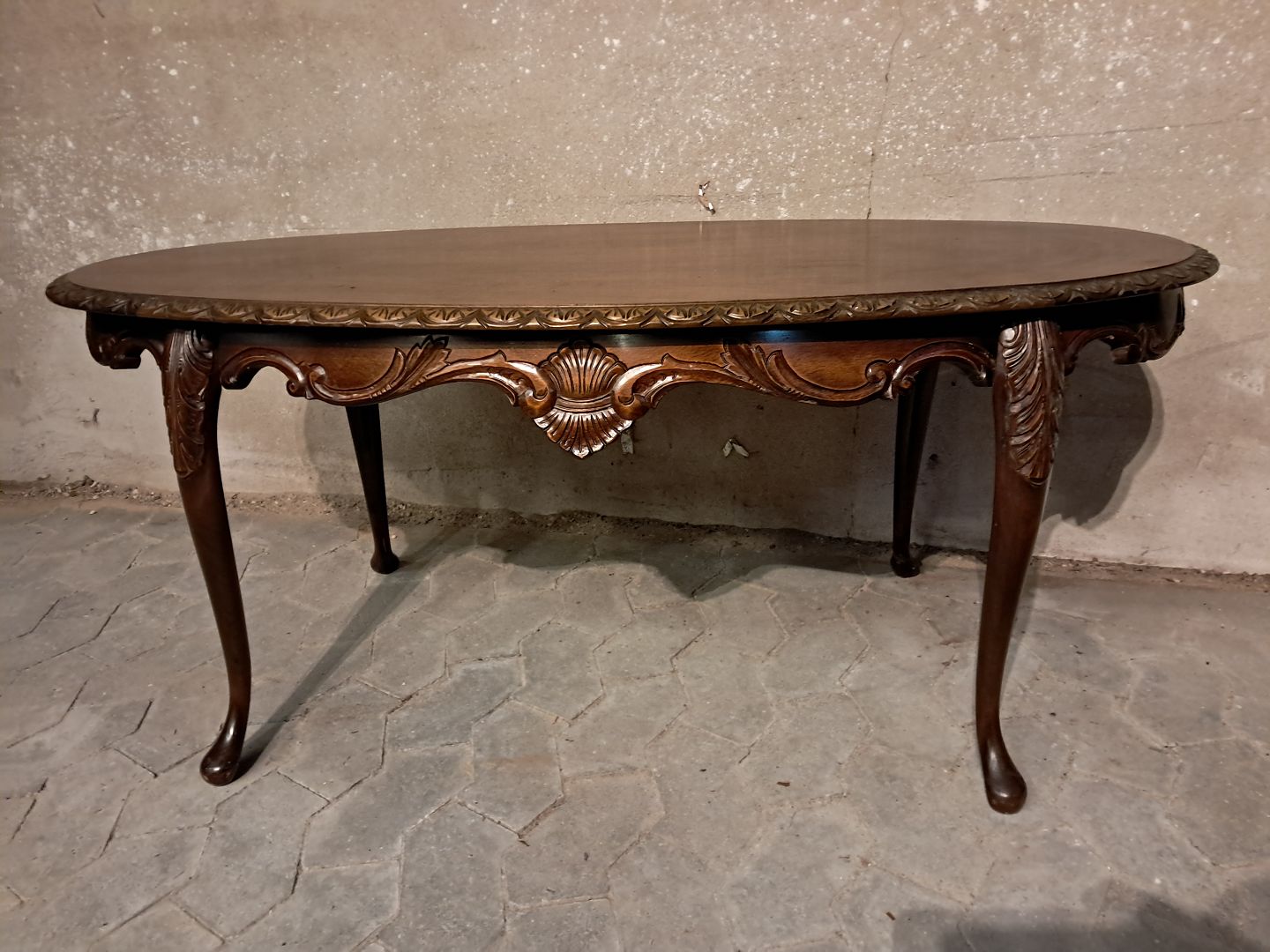 Sofabord i fineret nøddetræ, fra 1950erne. Det har brugsspor. Højde 53cm Bredde 64cm Længde 126cm Emne nummer: 91618