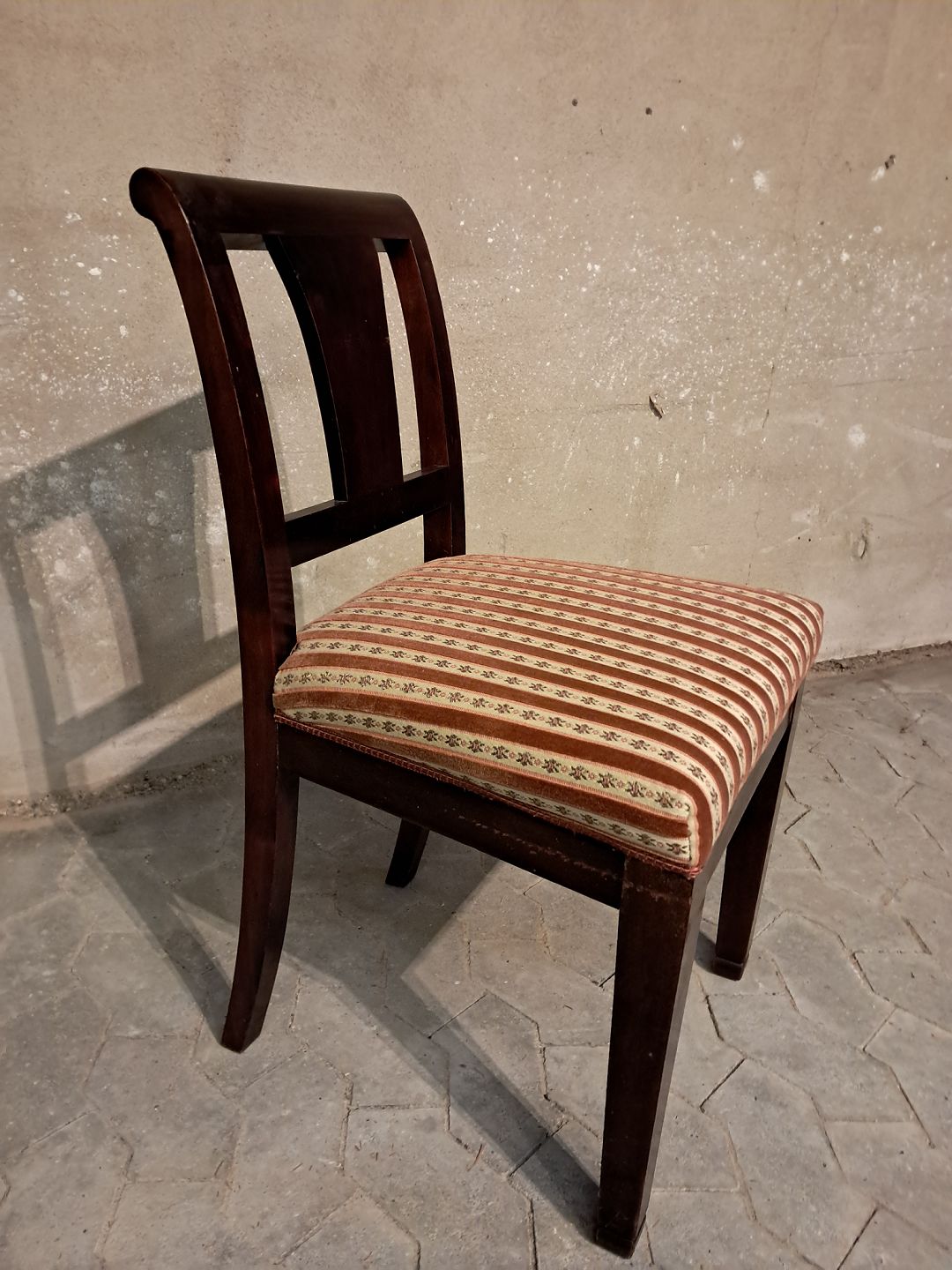 Salonstol i mahogni, fra 1910erne. Den har brugsspor. Ryghøjde 86cm Sædehøjde 46cm Emne nummer: 91630