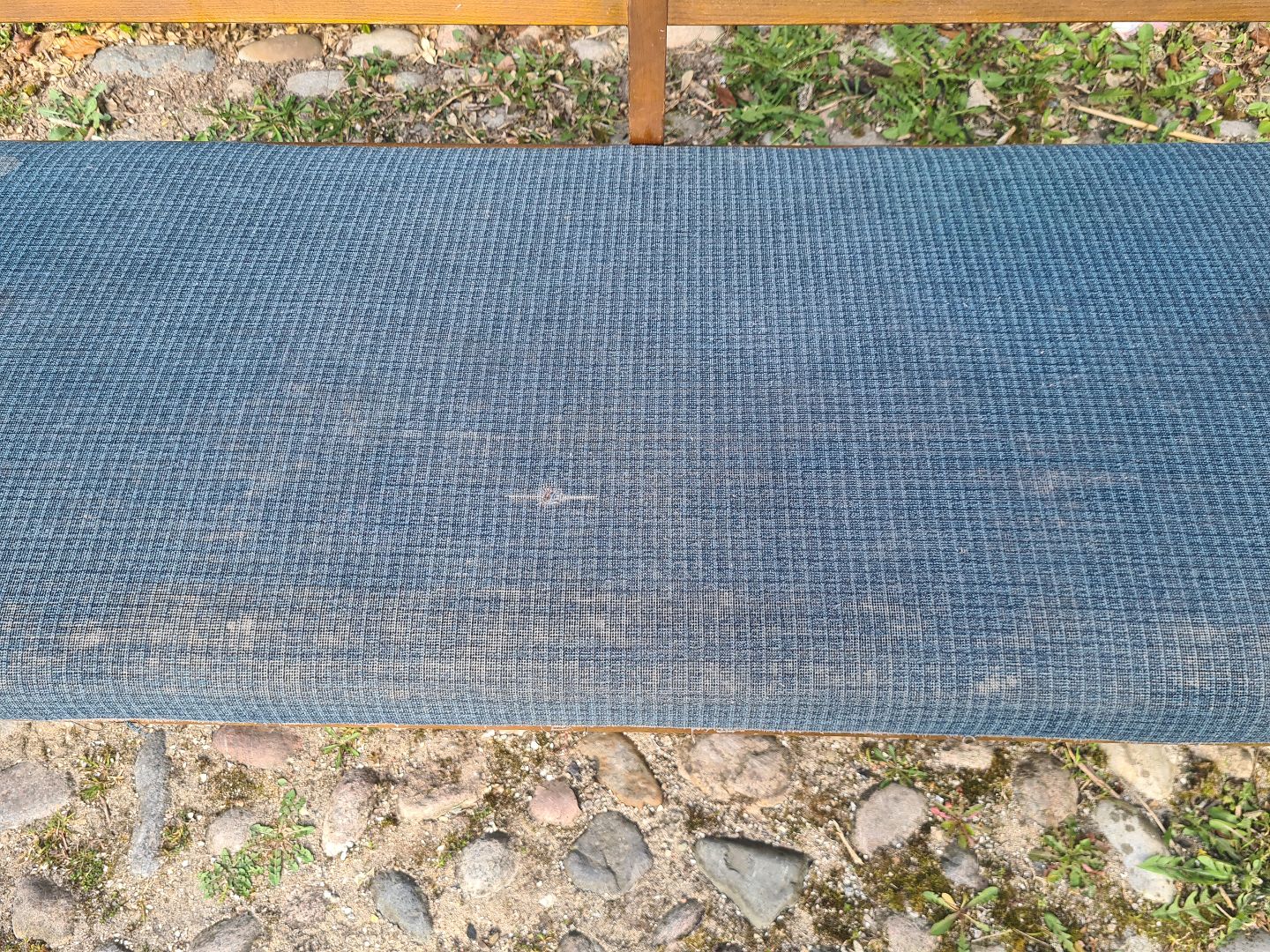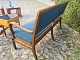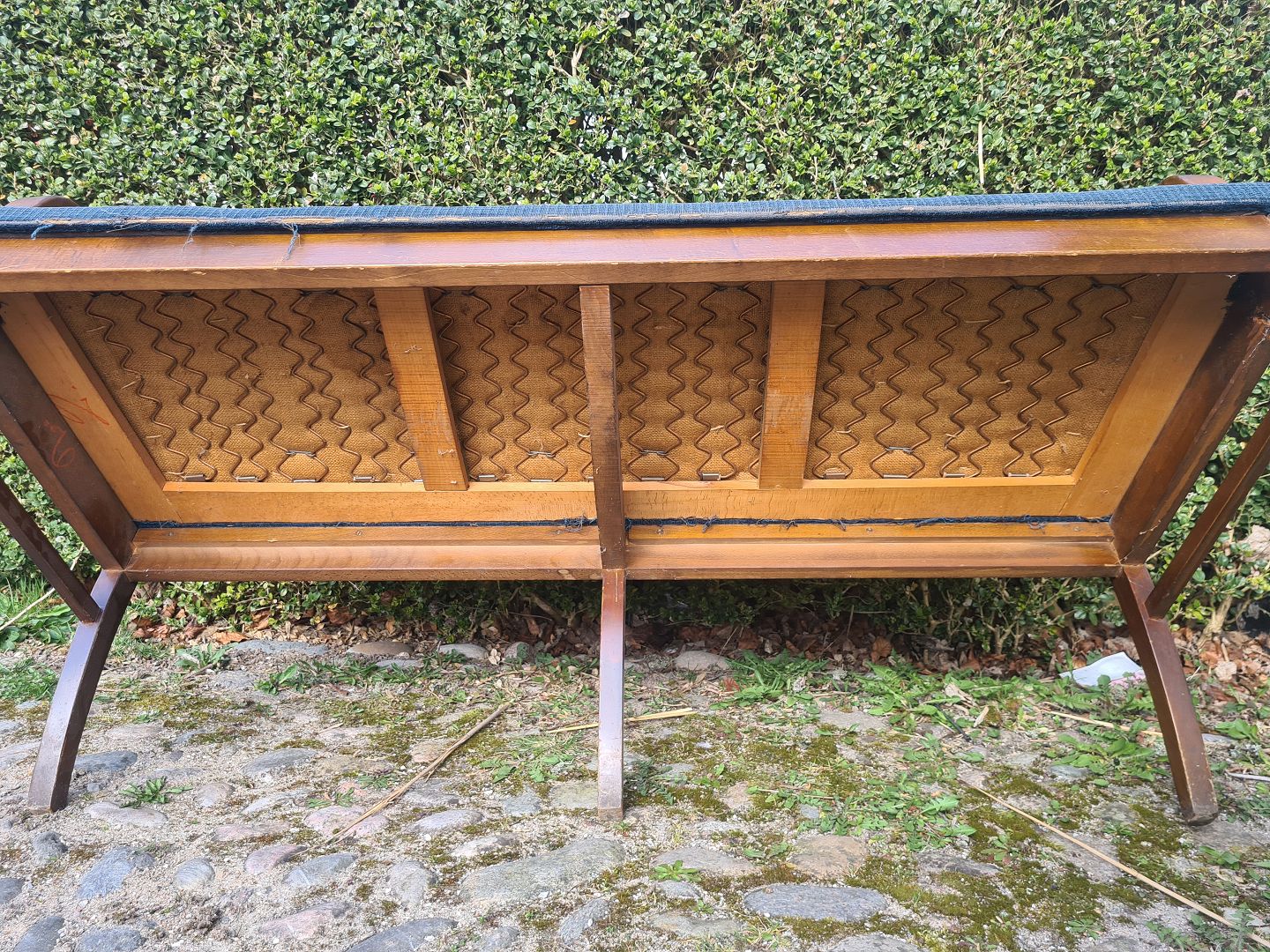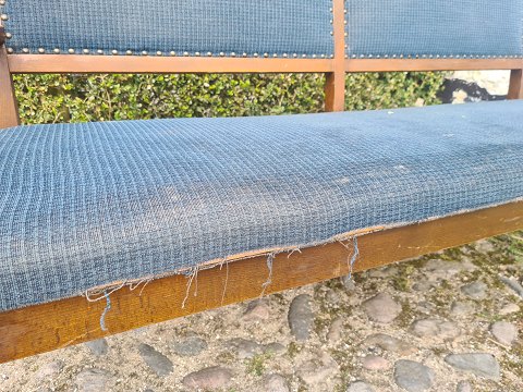 Dansk snedkermester bænk udført i bejdset egetræ betrukket med uld stof. Fremstillet ca. 1940'erne. Fremstår med brugsspor betræk med slidtage. Mål: H. 87 cm. L. 152 cm. D. 62 cm. SH. 42 cm. Emne nummer: 80850