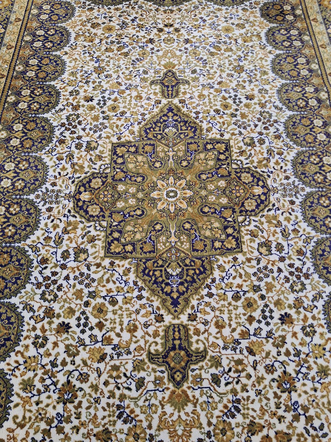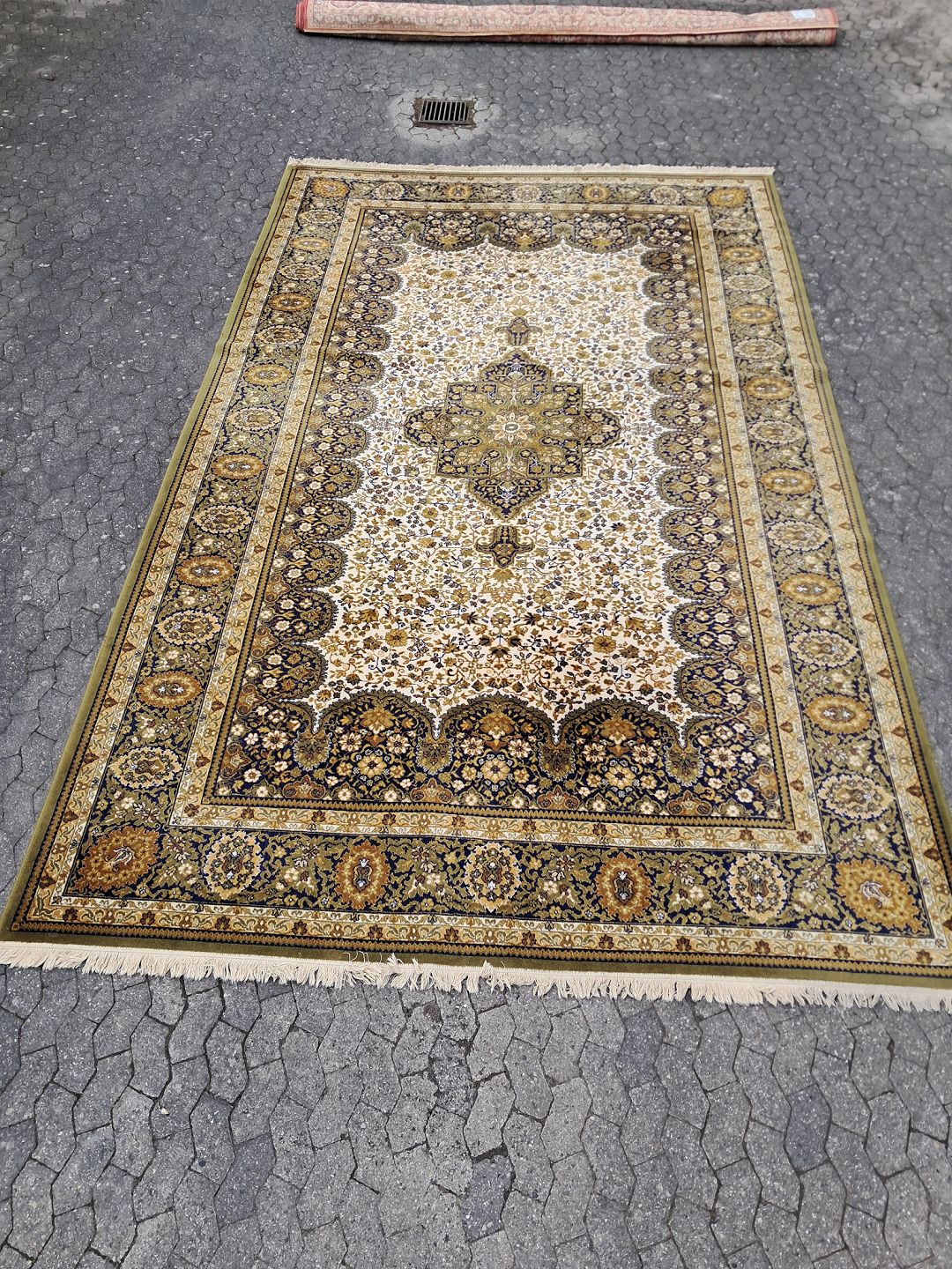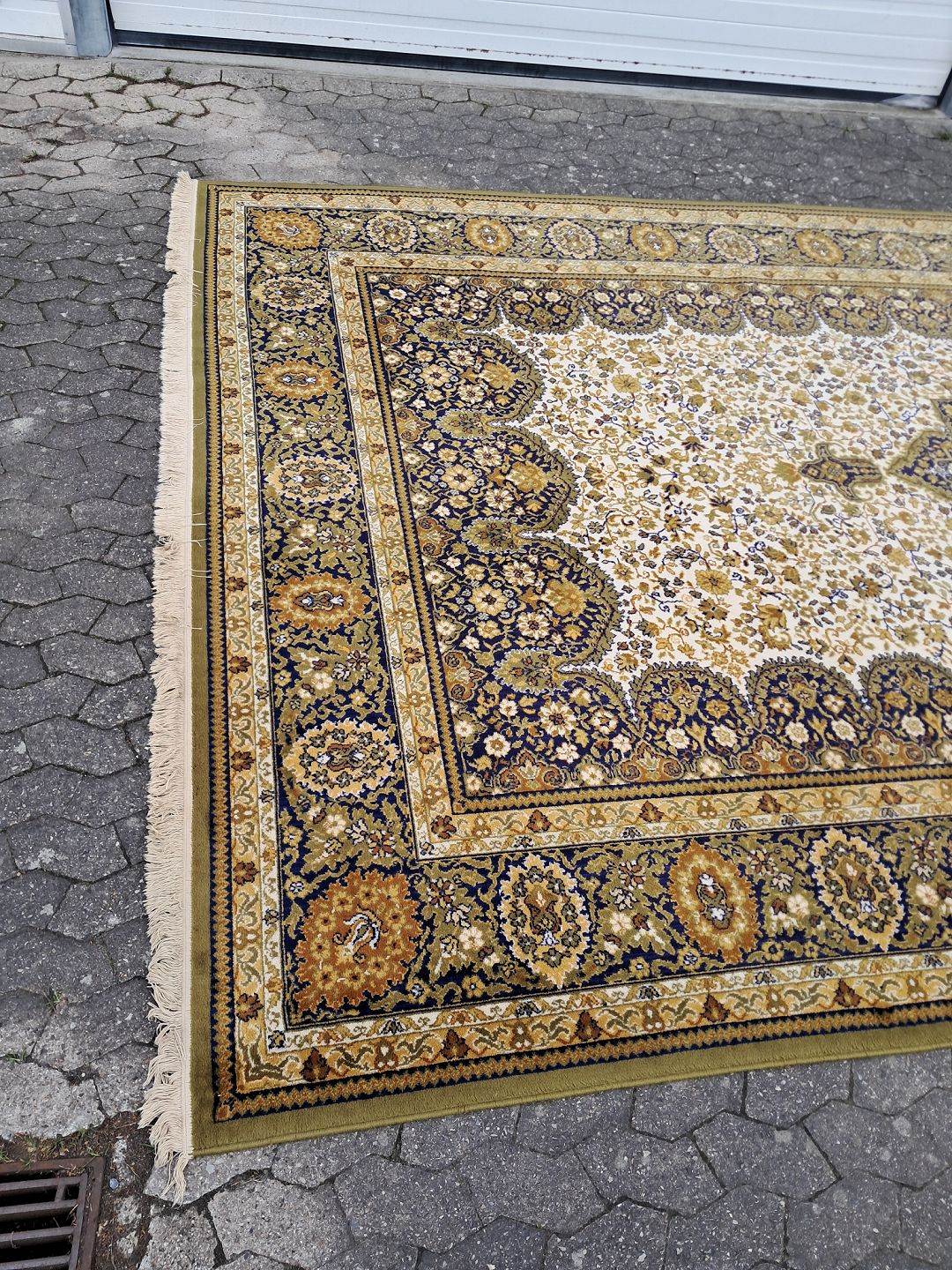Stort maskinvævet tæppe fra 1990erne. Det har brugsspor. Bredde 300cm Længde 520cm Emne nummer: 76648