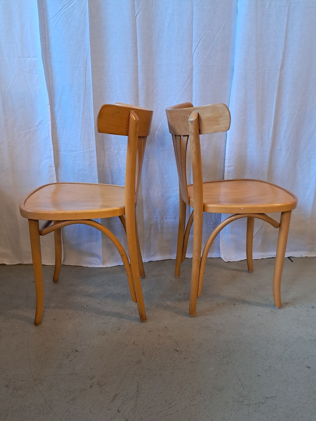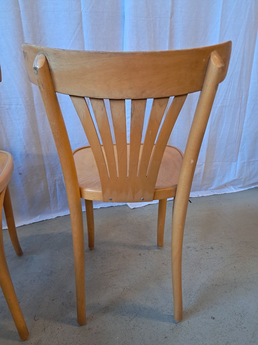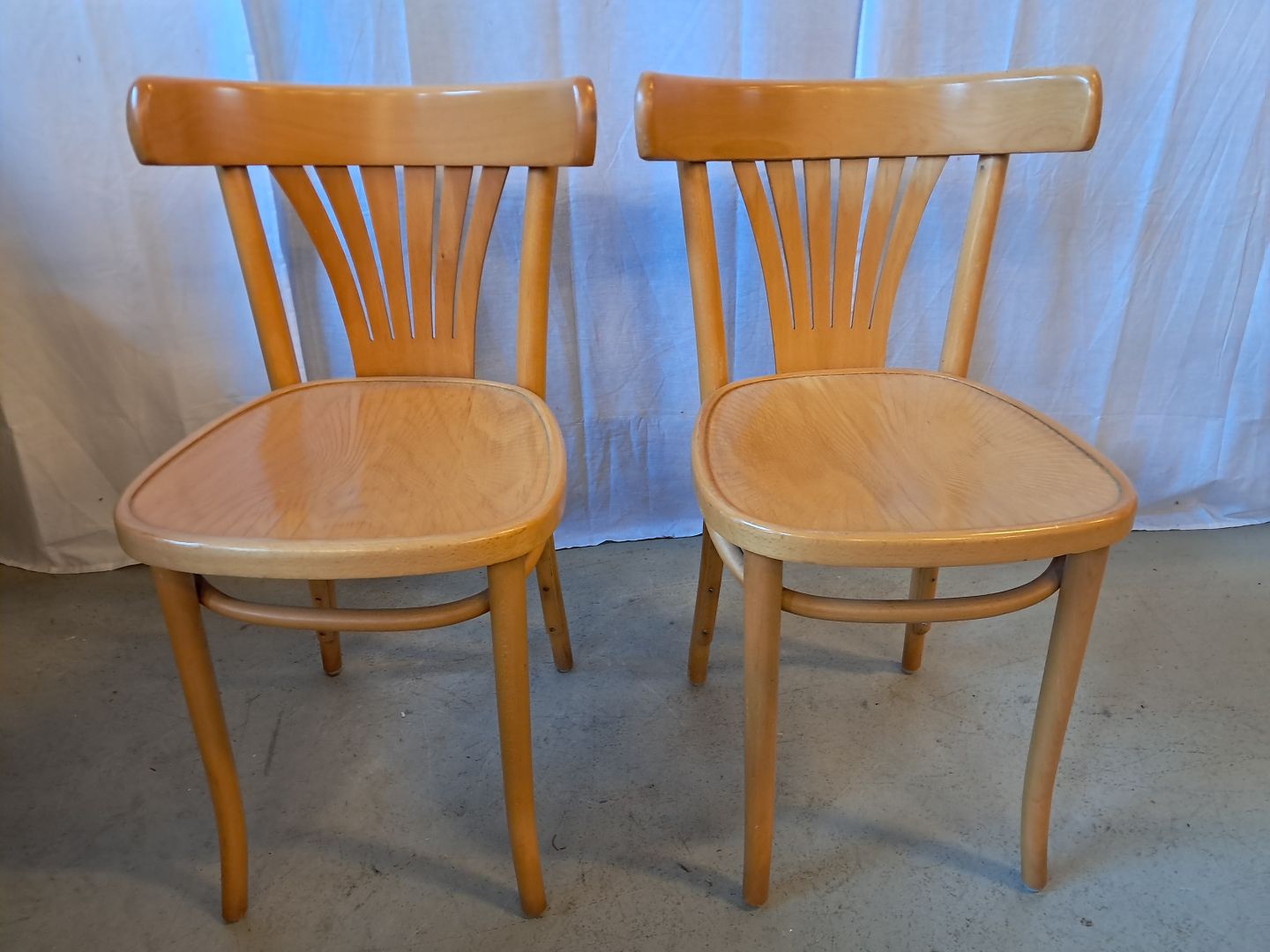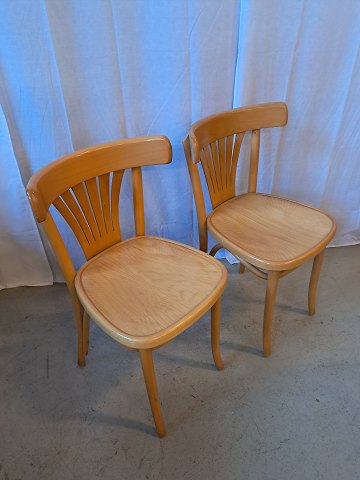2 Stole i massivt bøgetræ, fra 1990erne. De har brugsspor. Ryghøjde 78cm Sædehøjde 46cm Emne nummer: 76709