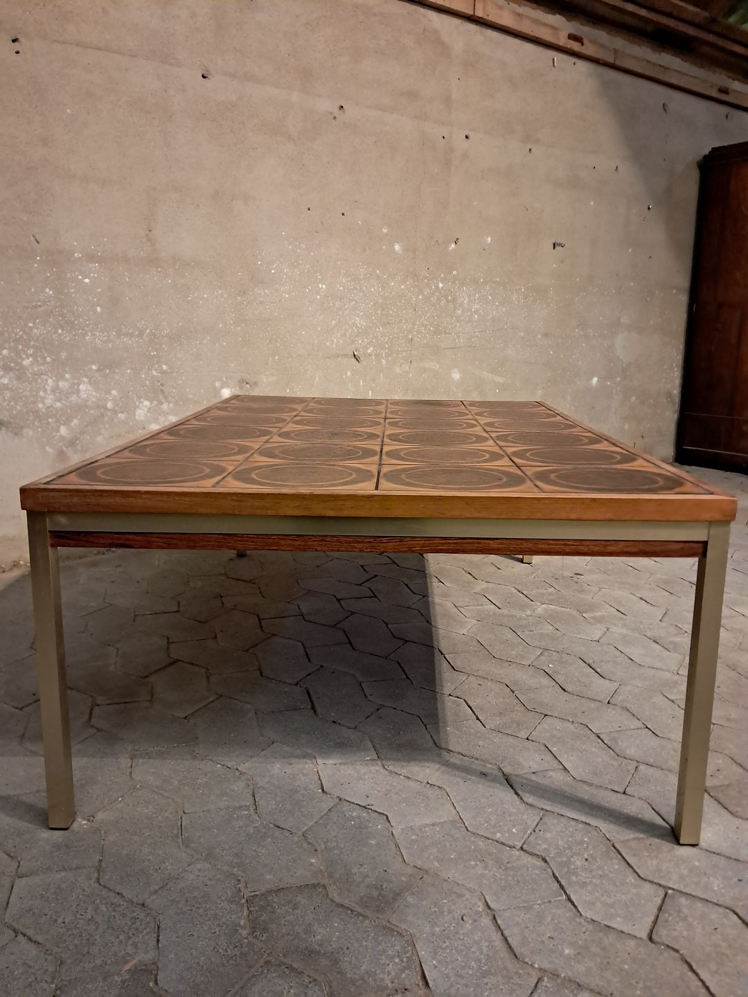 Kakkel sofabord i palisander og metal, fra 1960erne.