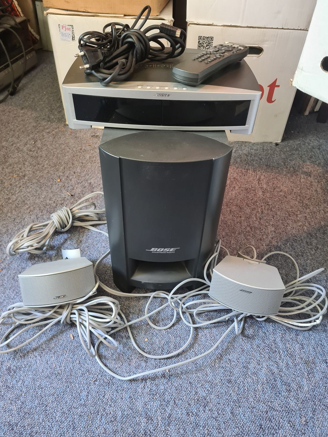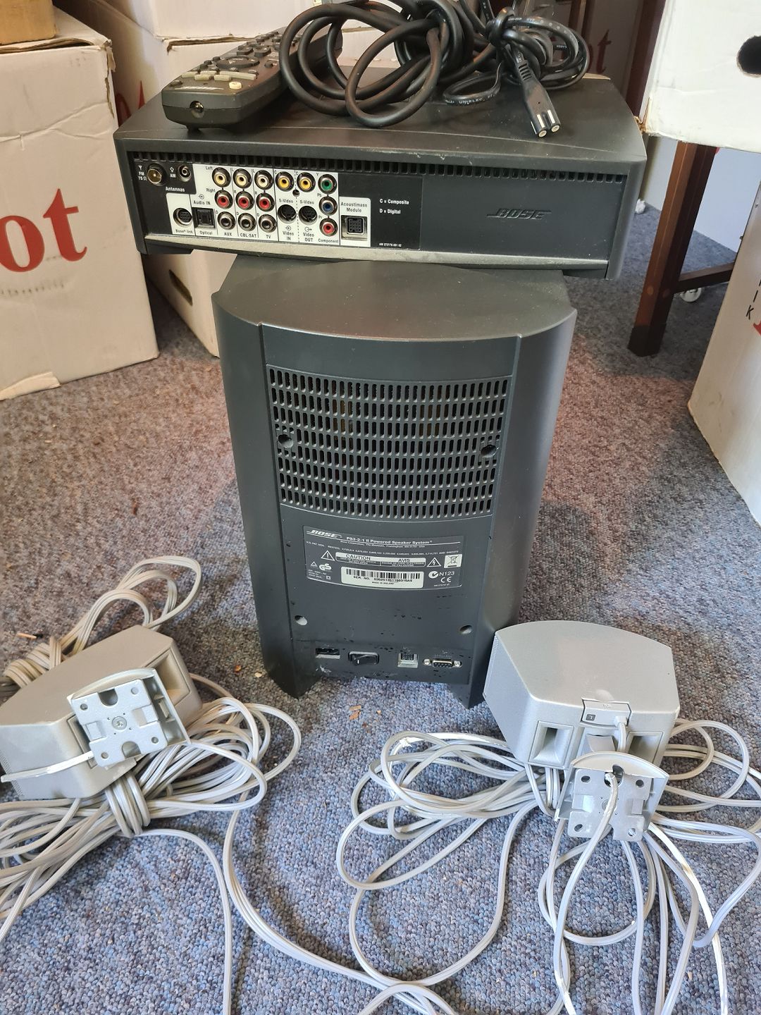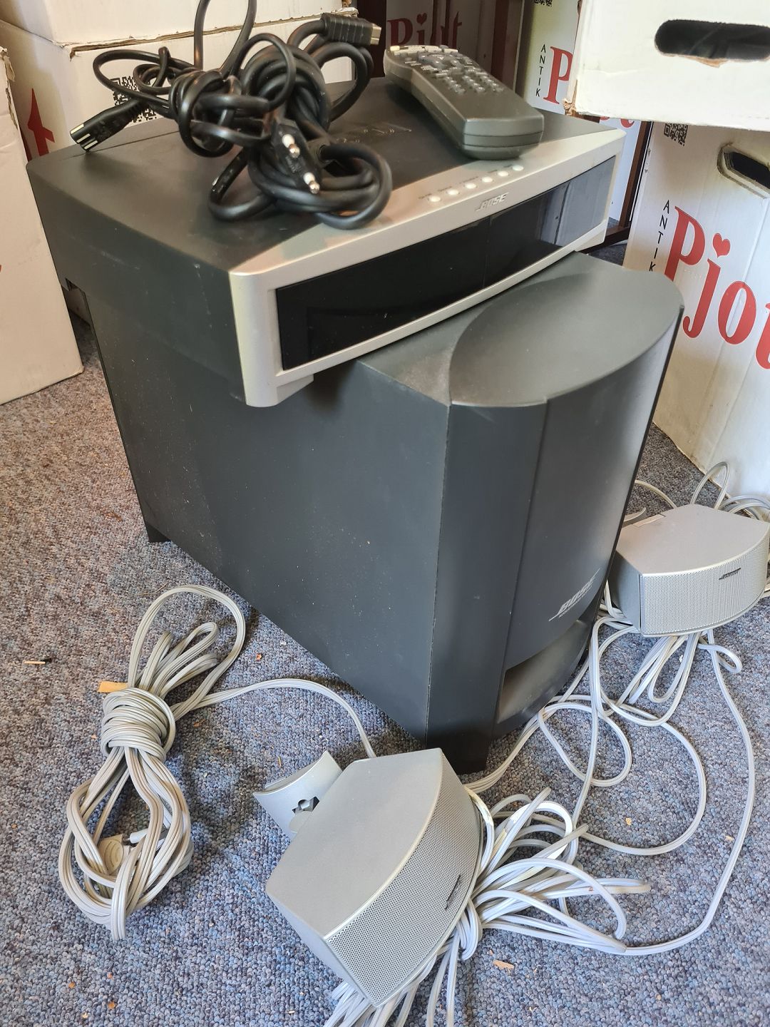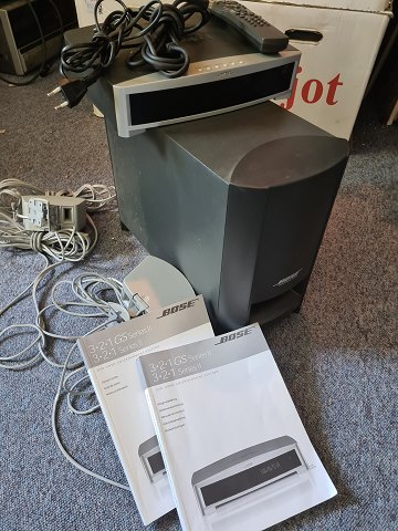 BOSE media center model AV3-2-1II med fjernbetjening, brugermanual og tilhørende højtaler sæt. Testet og virker. Emne nummer: 60651