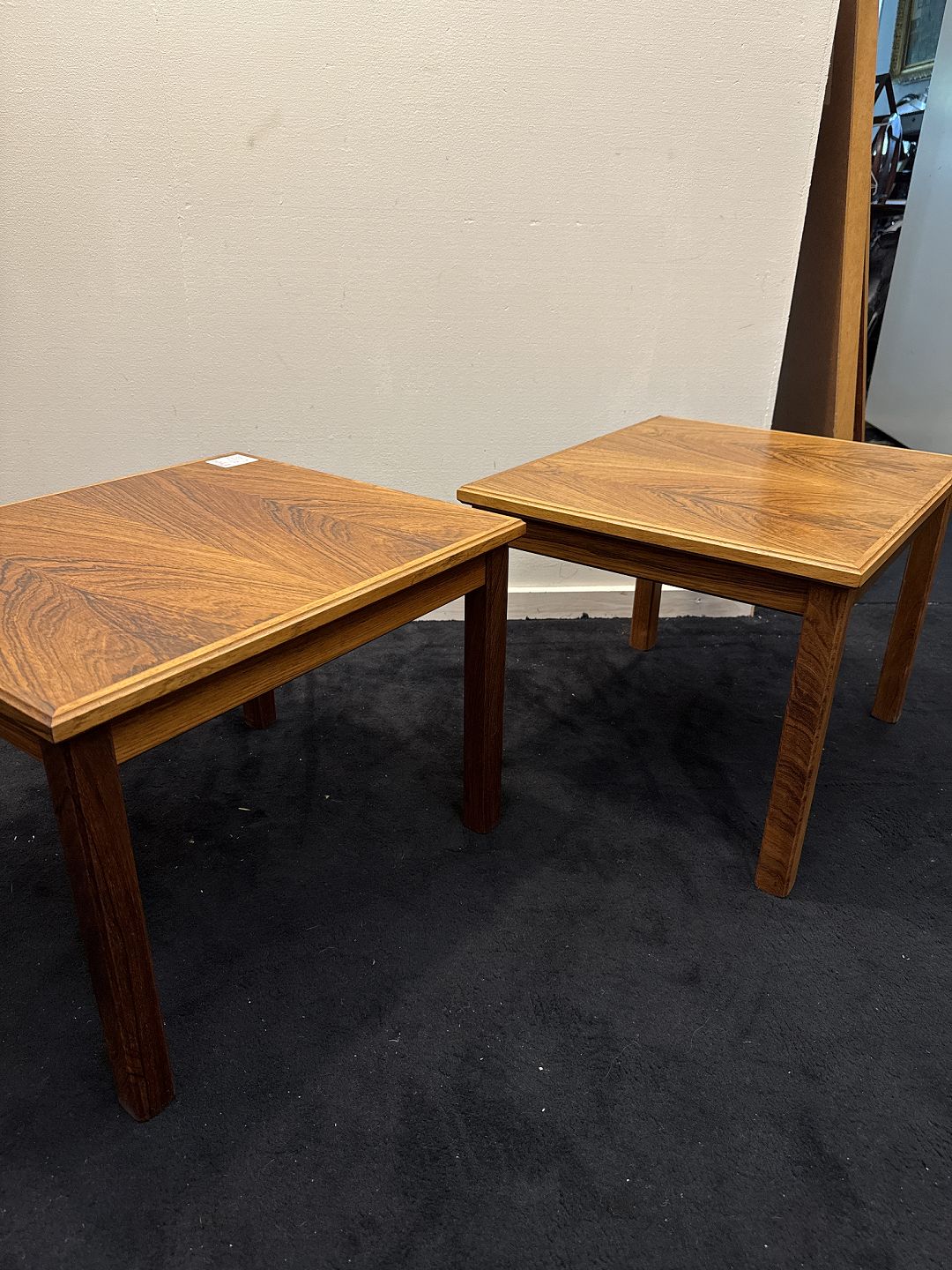 Dansk møbelproducent par sideborde i Palisander udført ca. 1970’erne. Fremstår i pæn brugt stand. Mål: H. 37 cm. B. 50,5 cm. D. 43 cm. Emne nummer: 80858