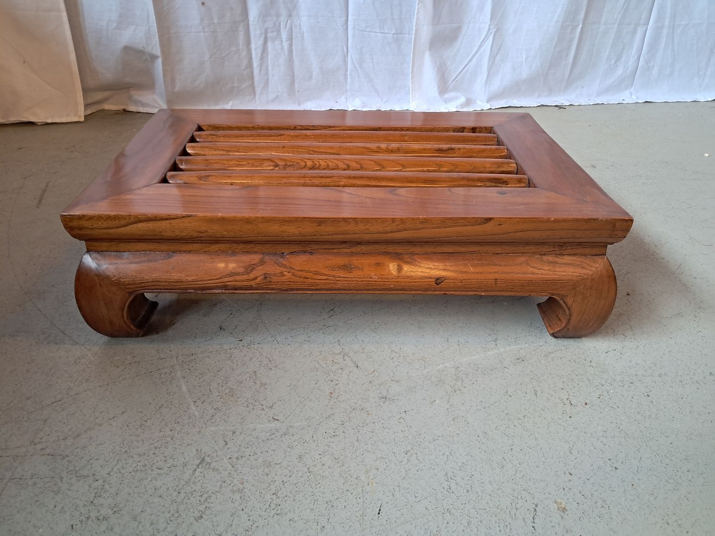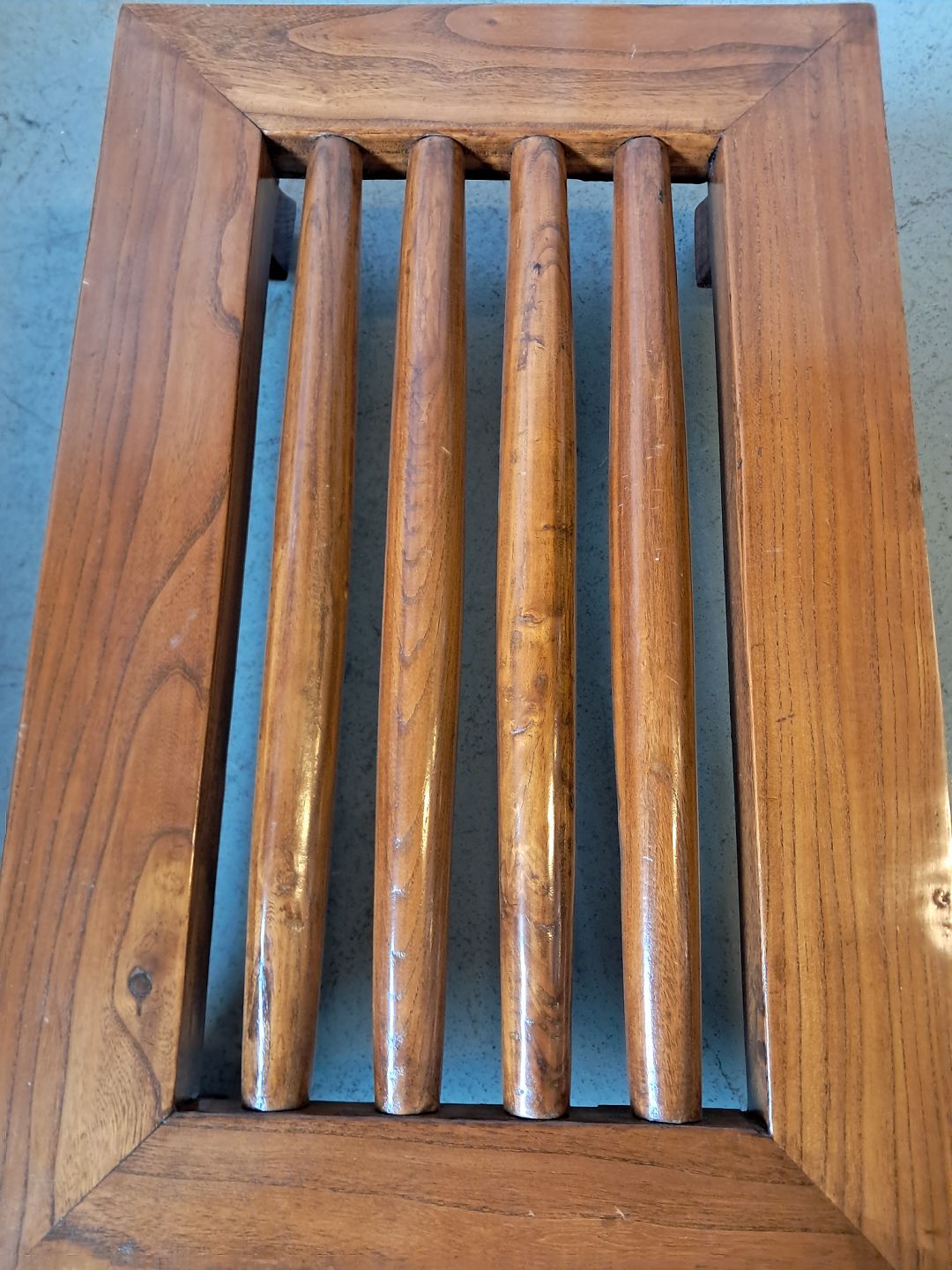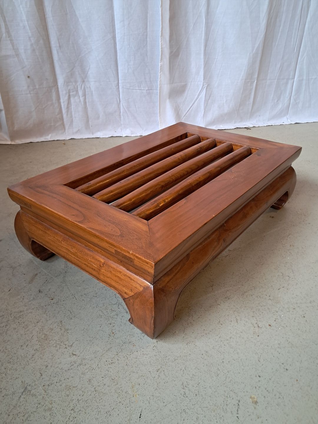 Asiatisk fodskammel i massivt træ, fra 2000erne.