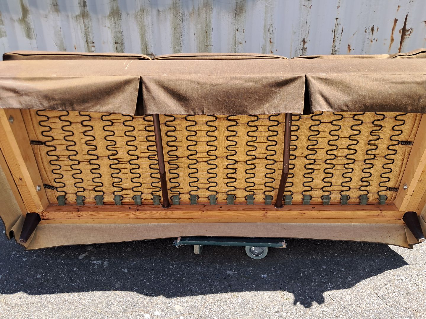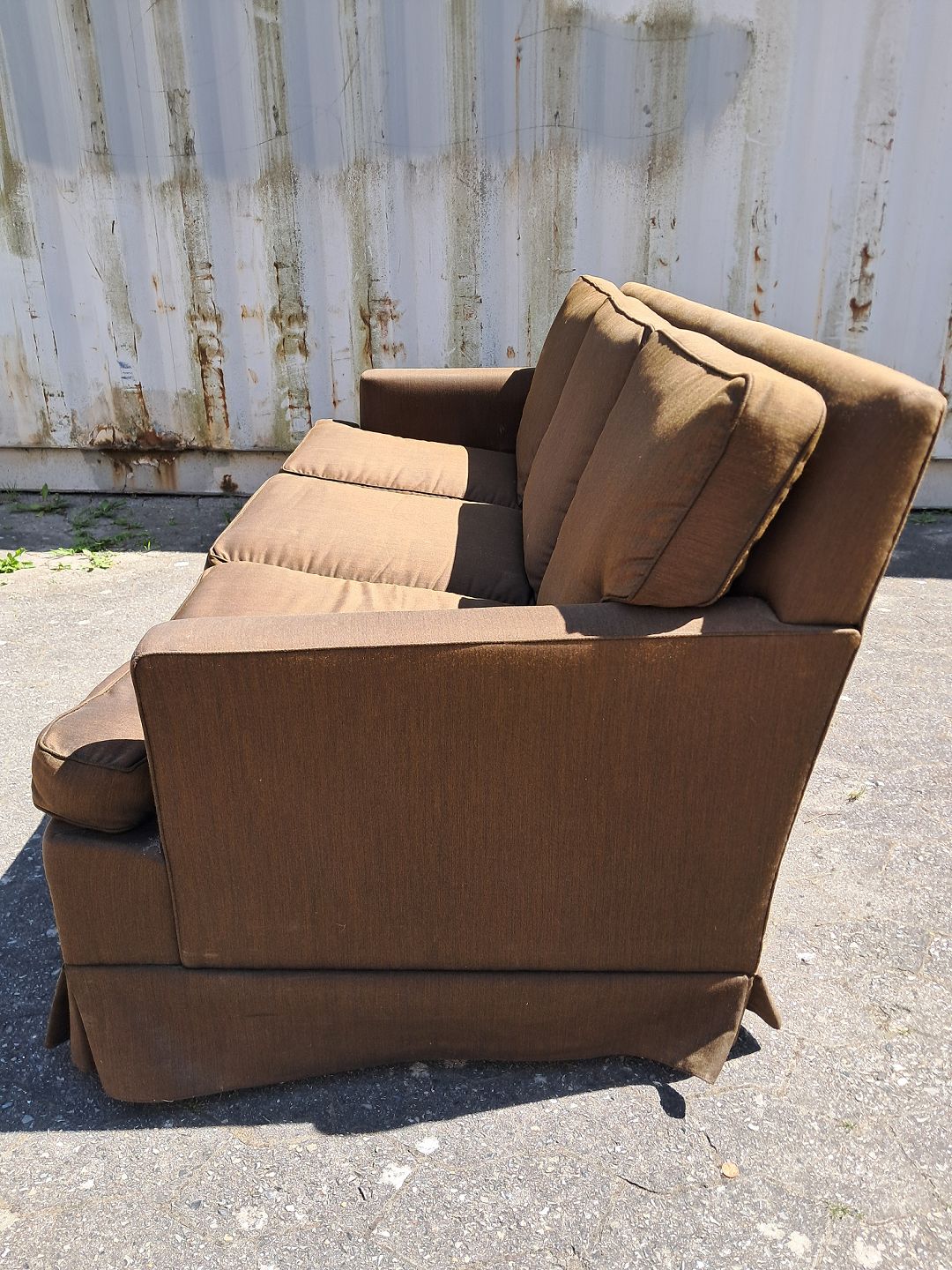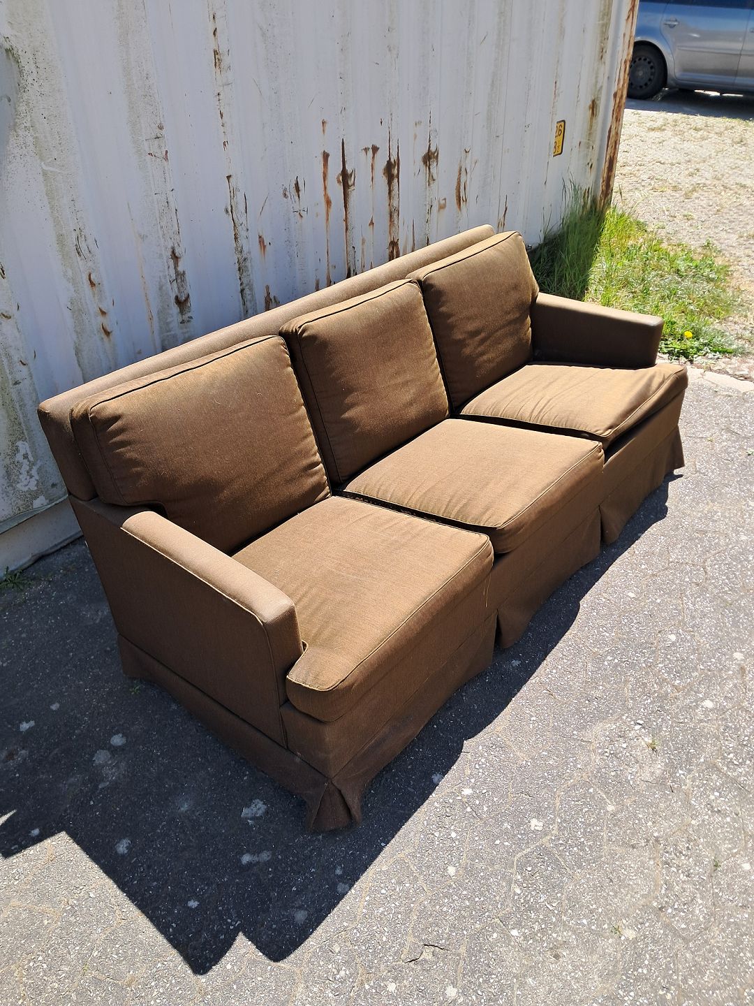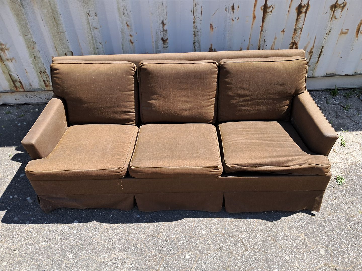 Sofa med stofbetræk, fra 1980erne. Den har brugsspor. Ryghøjde 71cm Sædehøjde 38cm Bredde 180cm Dybde 75cm Emne nummer: 76764