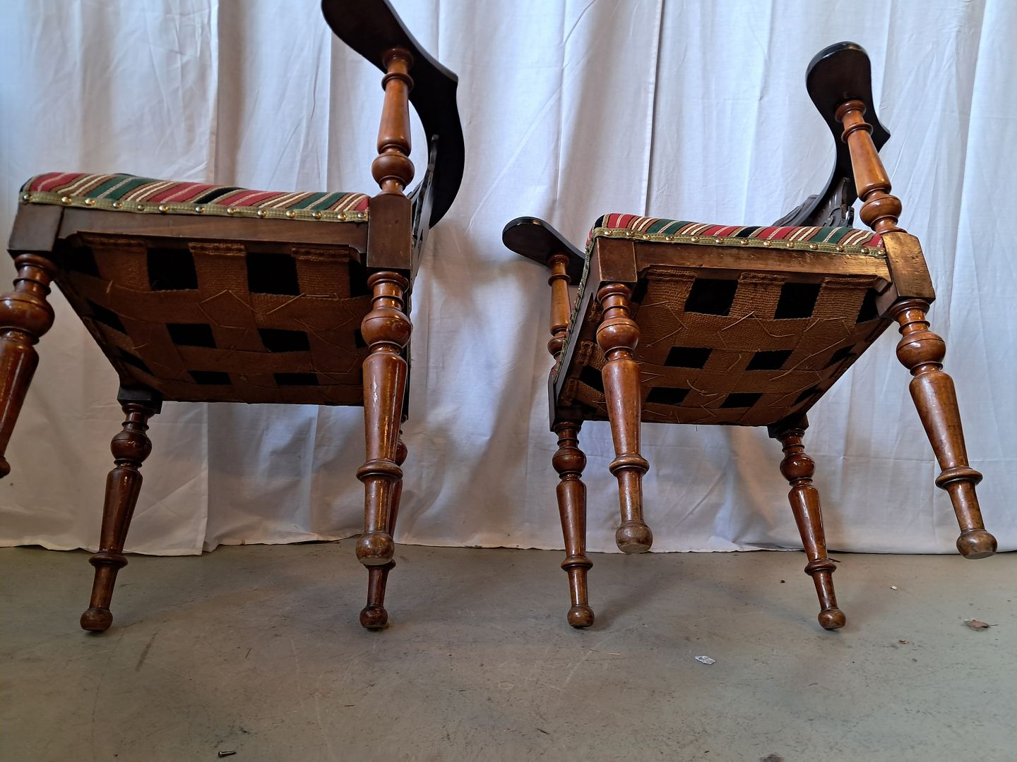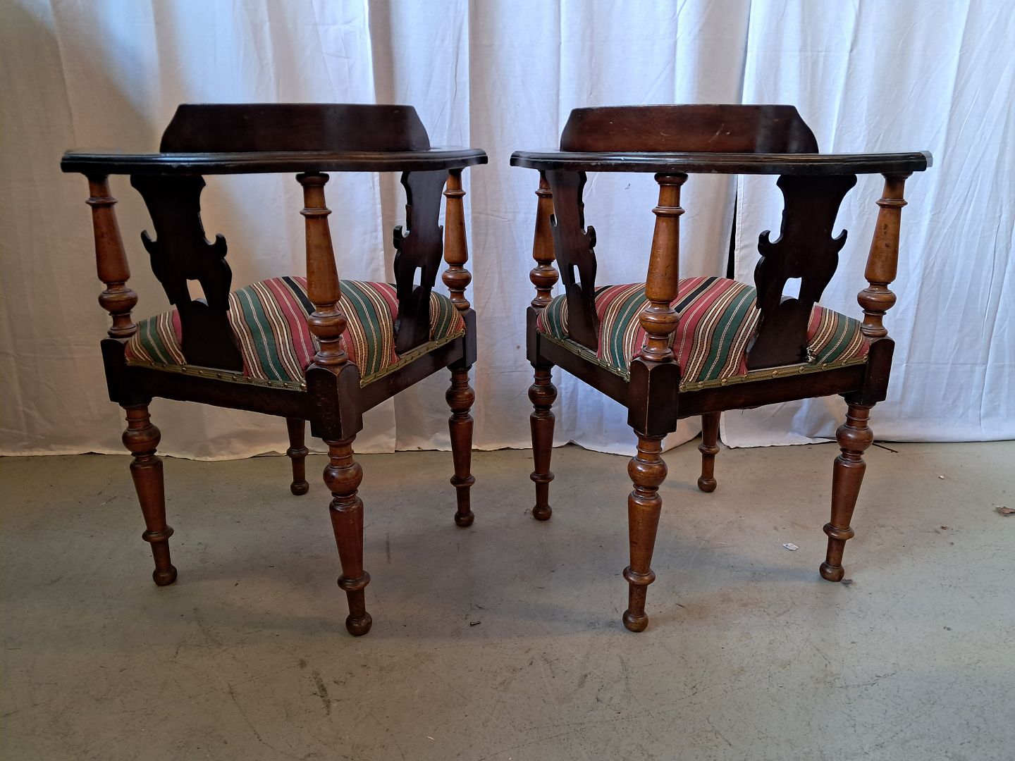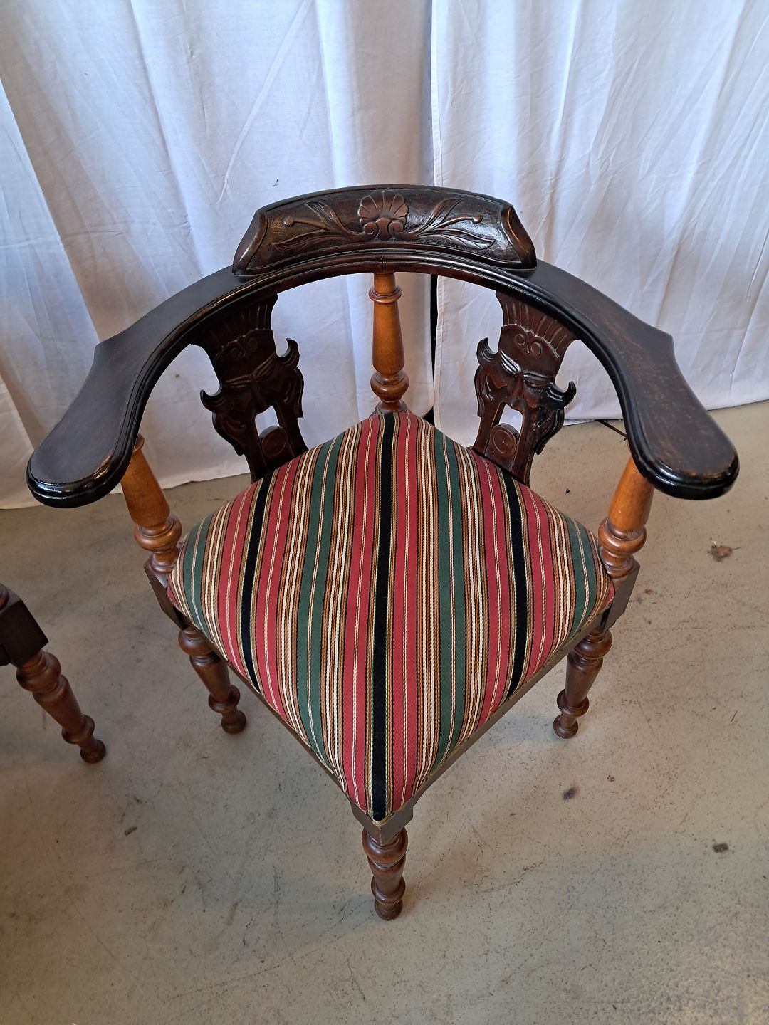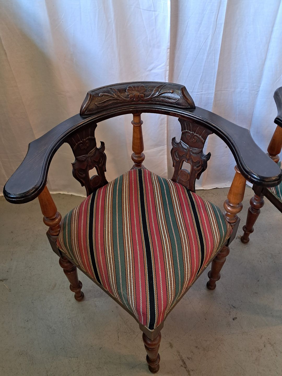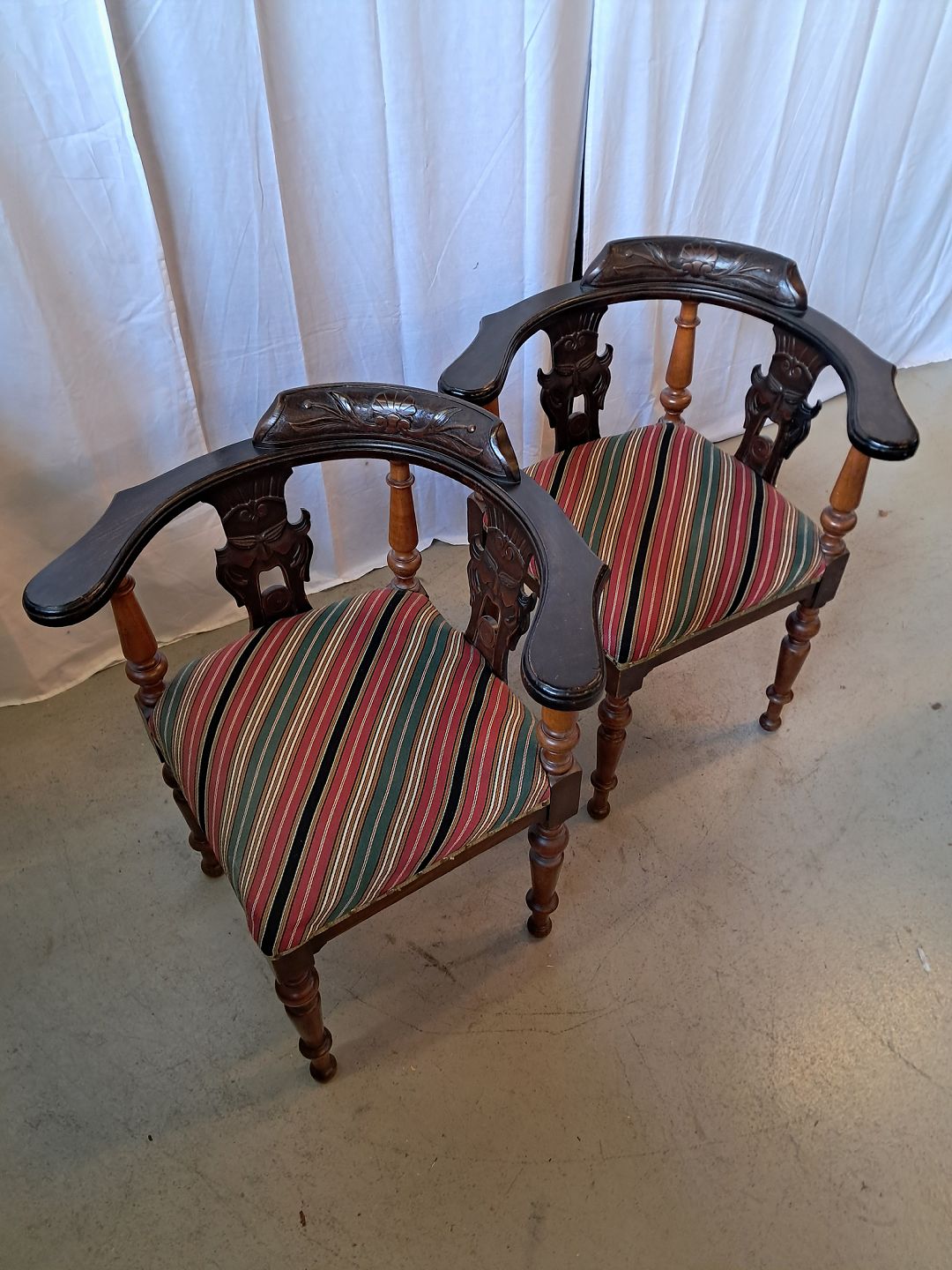 2 Ens hjørnestole i massivt bøgetræ, fra 1910erne. De har patina. Ryghøjde 80cm Sædehøjde 48cm Emne nummer: 76768