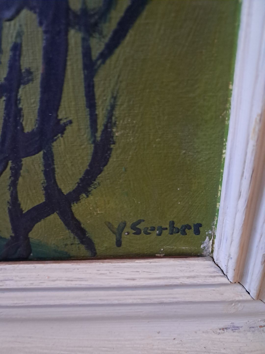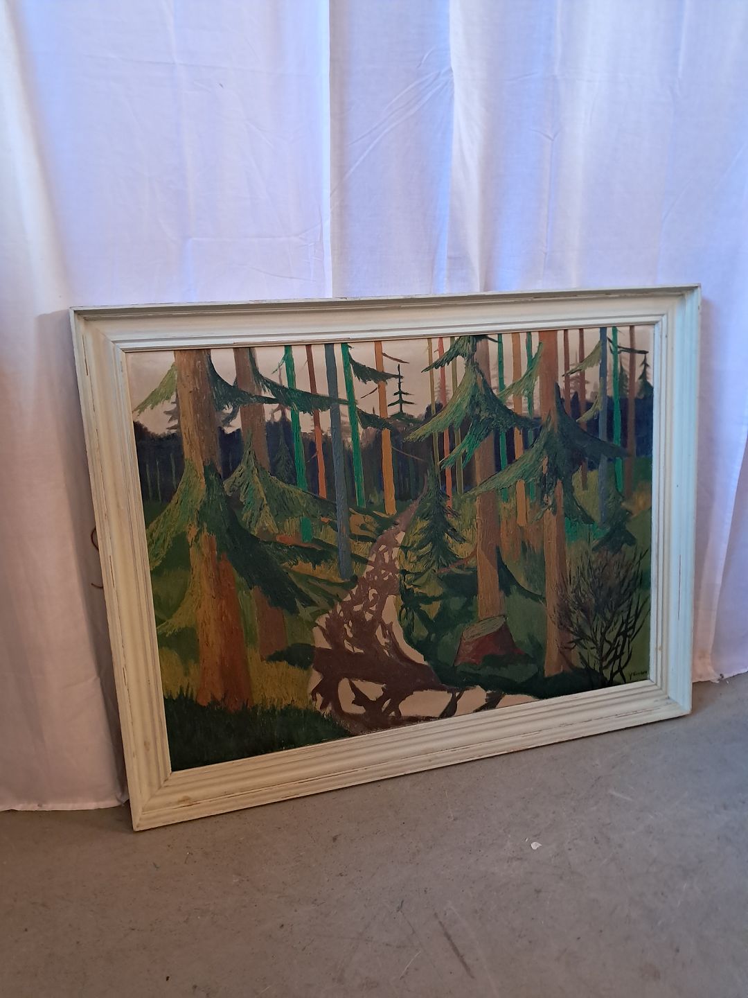 Maleri med skovmotiv i malet ramme, fra 1960erne.