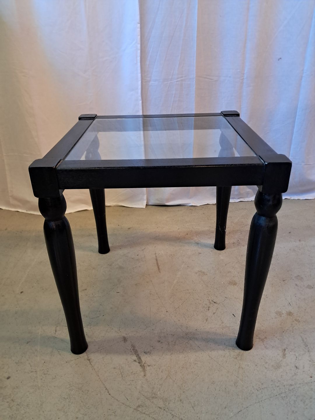 Bord i malet massivt træ med glasplade, fra 2000erne.
