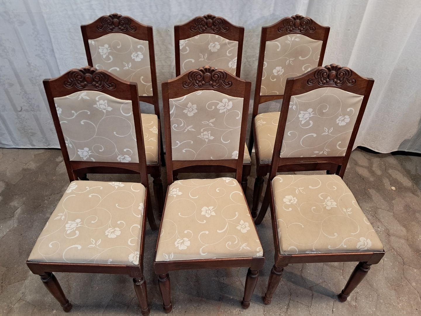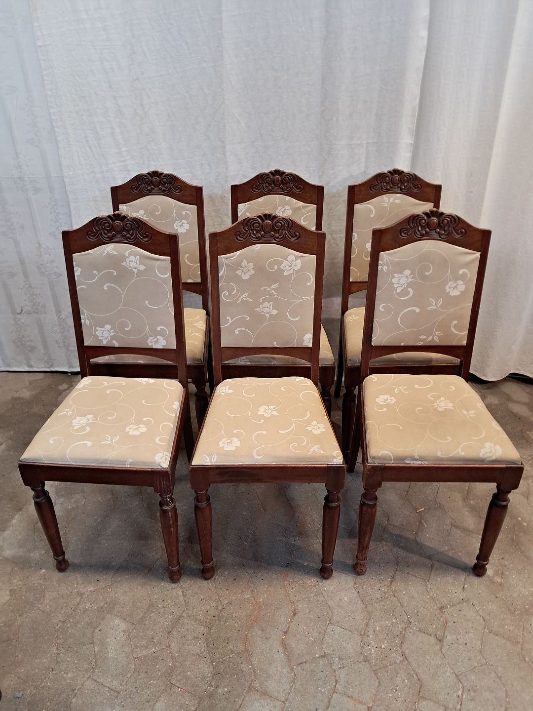 6 Stole i massivt bøgetræ, fra 1910erne. De har brugsspor. Ryghøjde 102cm Sædehøjde 48cm Emne nummer: 91732