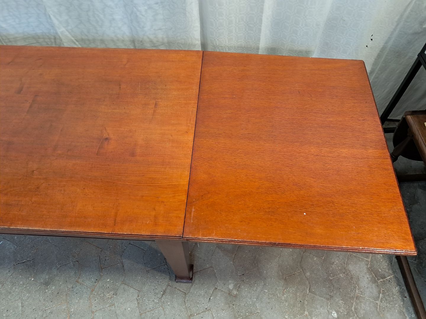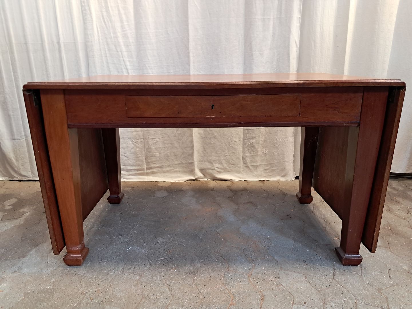 Bord i fineret bøgetræ med skuffe og klapper, fra 1920erne.