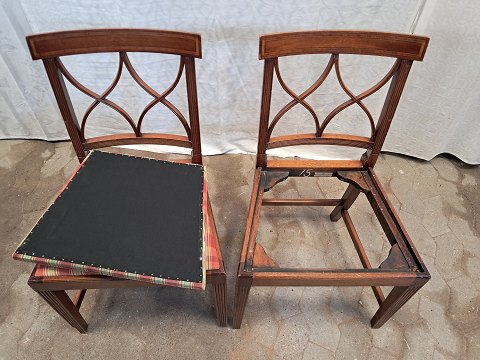 2 Lysberg Hansen og Therp stoel i massivt mahogni, fra 1980erne. De har brugsspor. Ryghøjde 86cm Sædehøjde 46cm Emne nummer: 91778