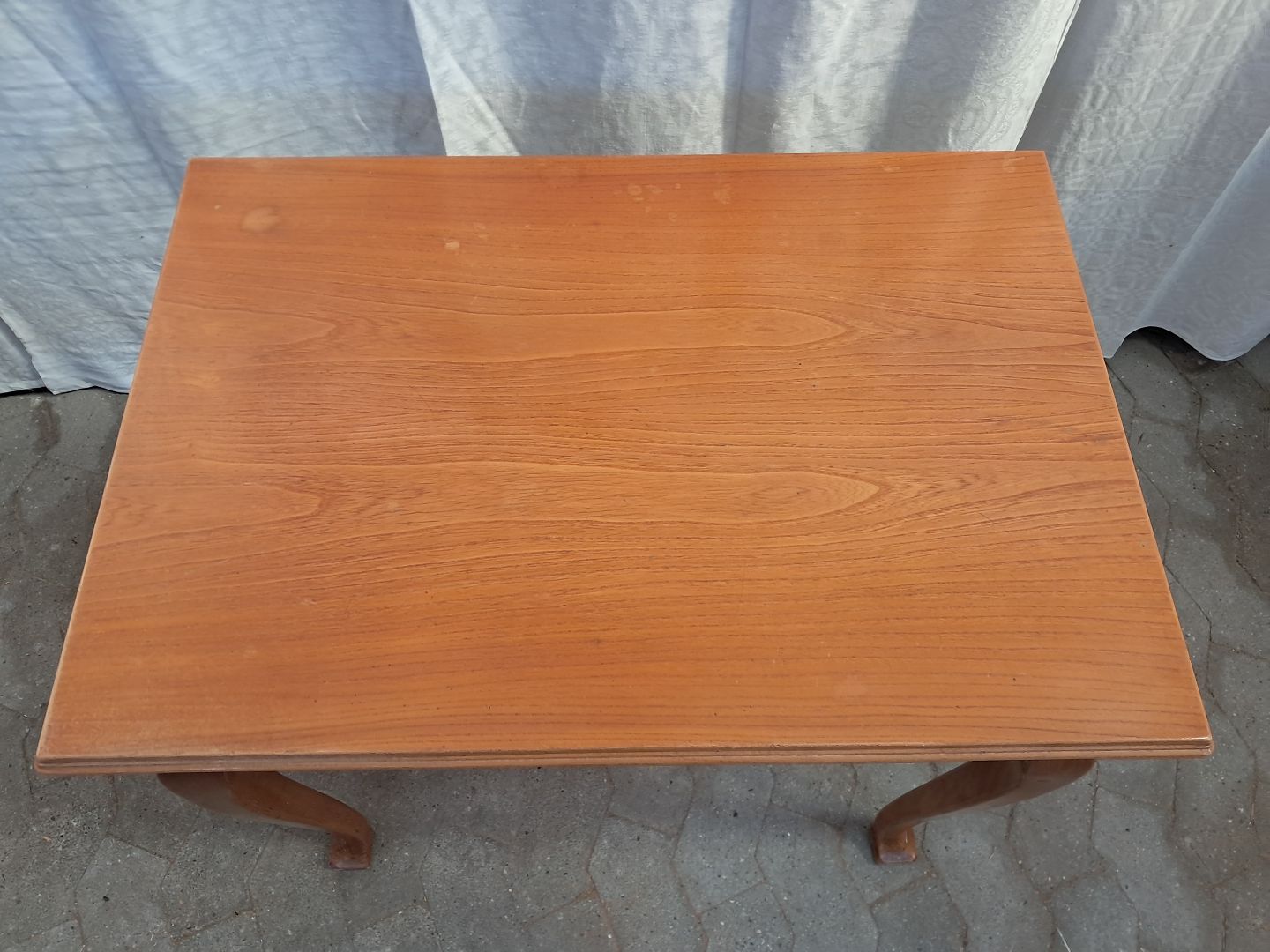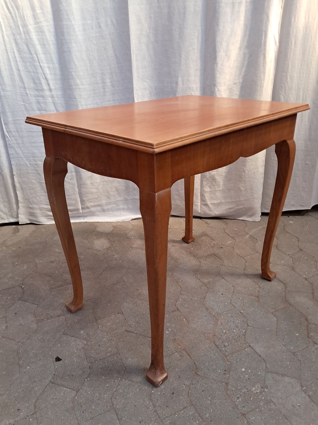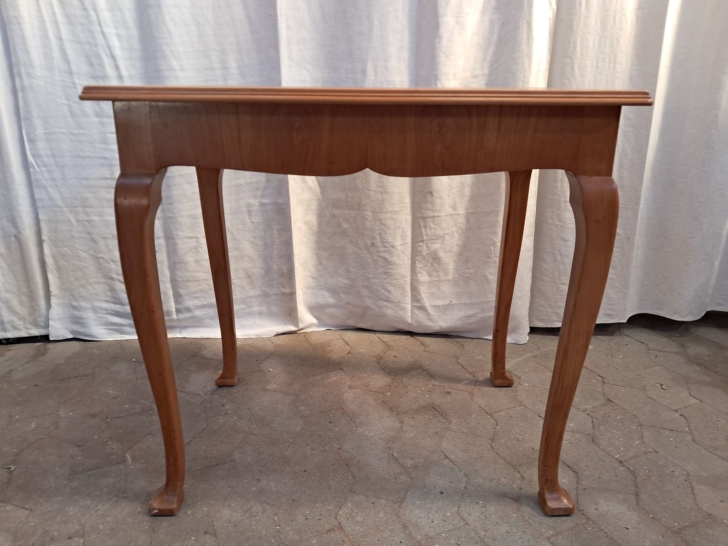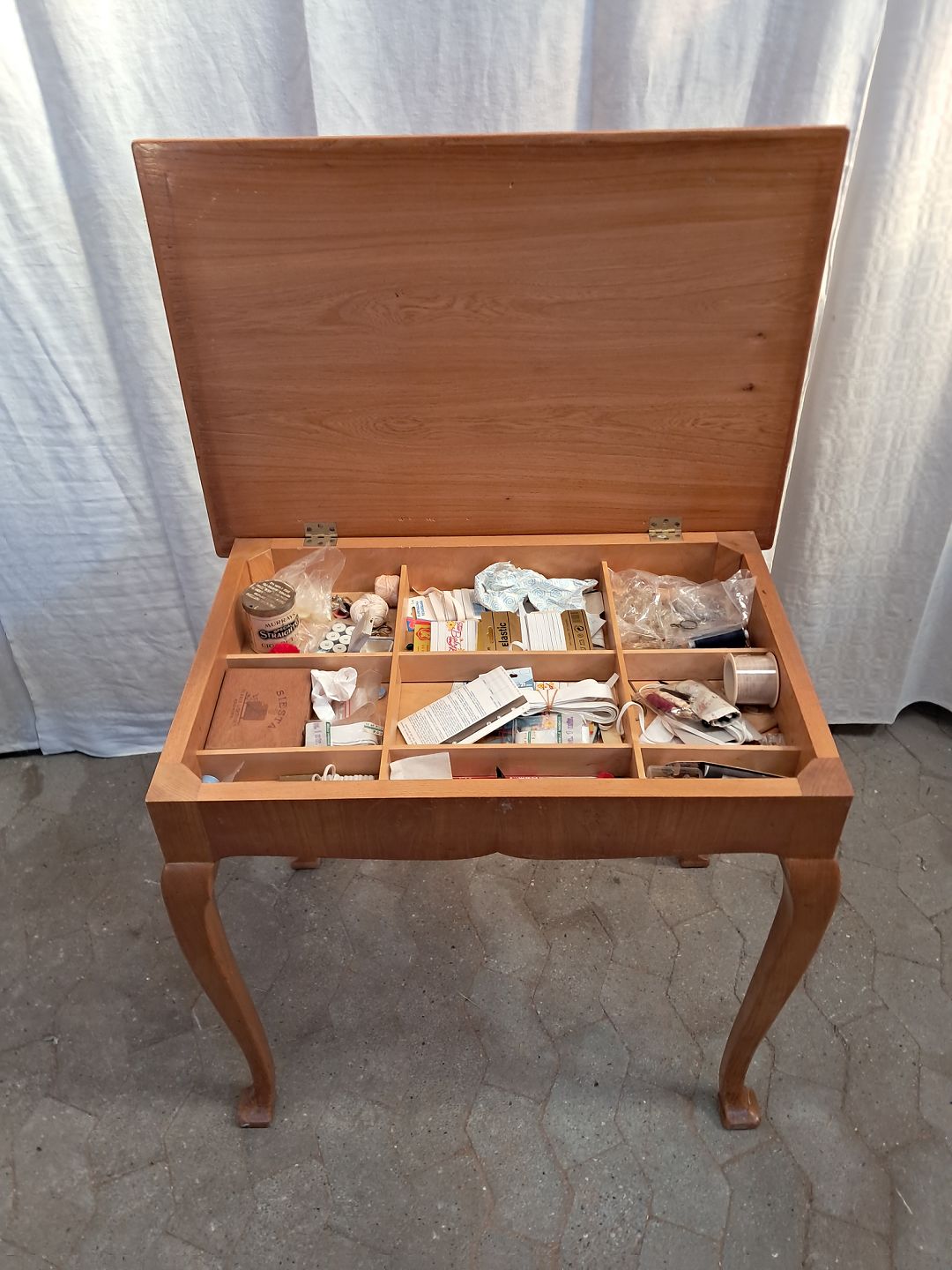 Sybord i fineret elmetræ, fra 1940erne. Det har brugsspor. Højde 72cm Bredde 78cm Dybde 54cm Emne nummer: 91804
