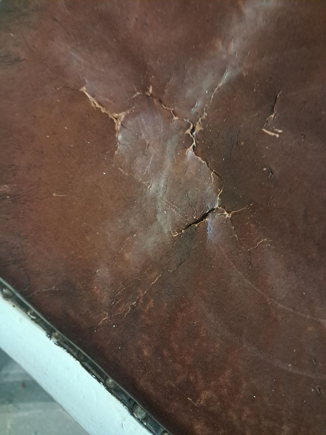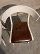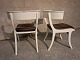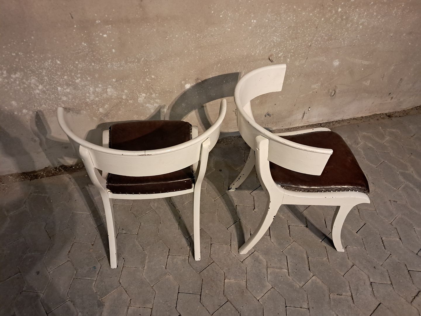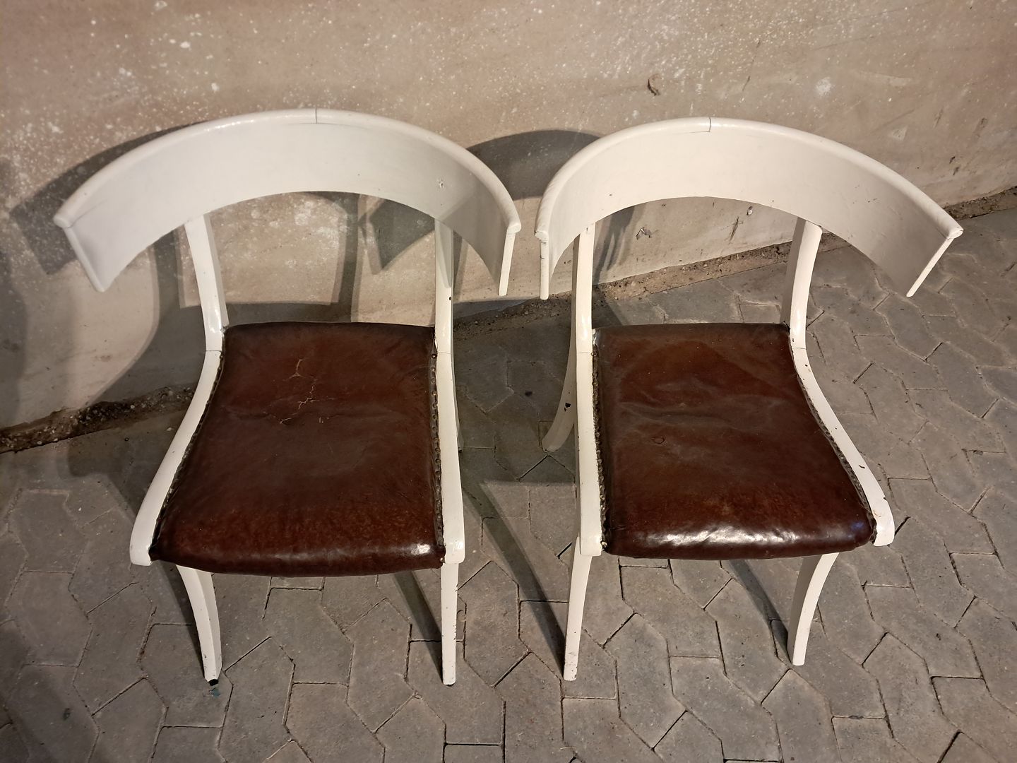 2 Malede stole med læderbetræk, fra 1910erne. De har brugsspor og den ene har defekt læder.(se foto) Ryghøjde 75cm Sædehøjde 44cm Emne nummer: 91807