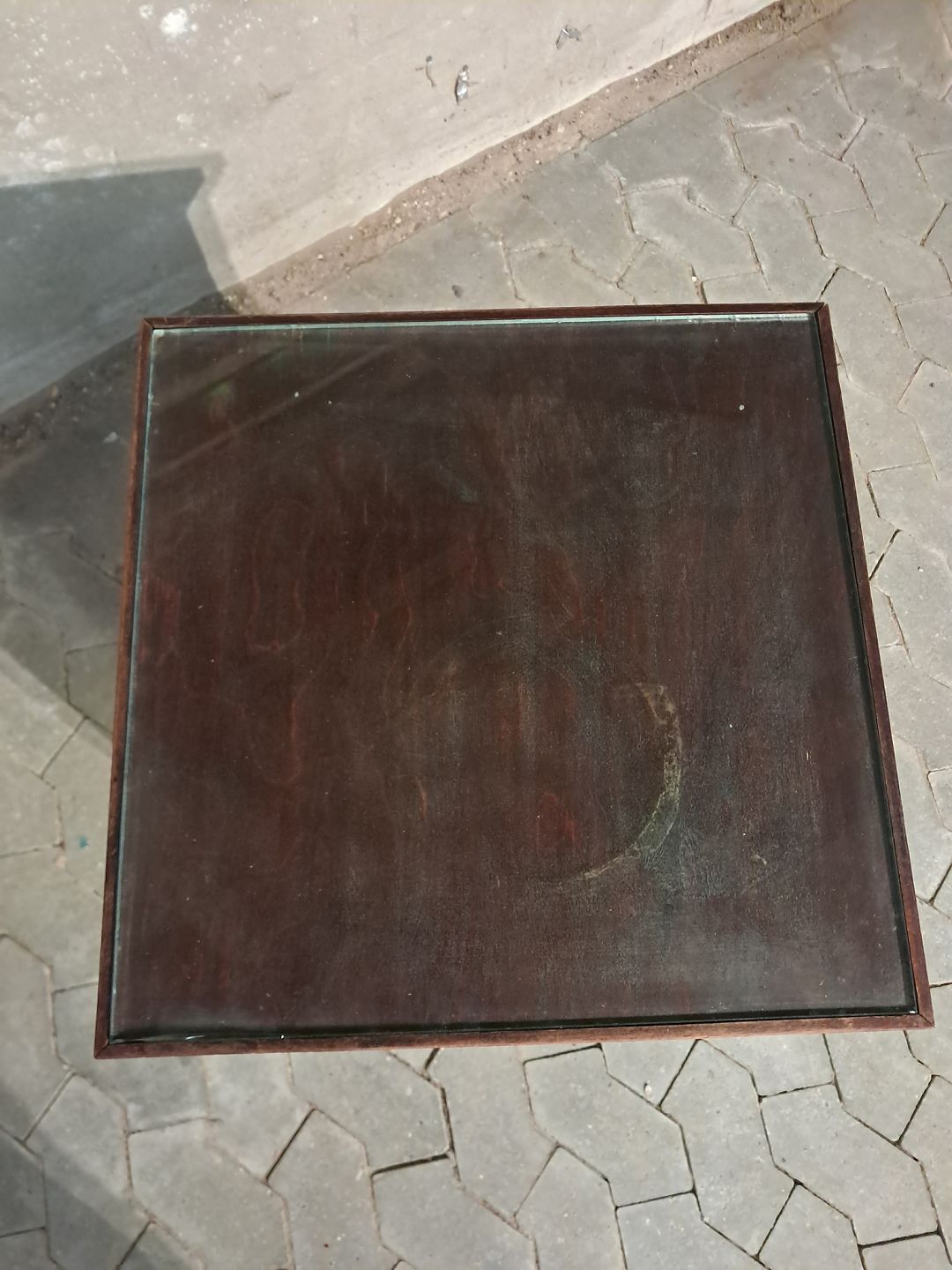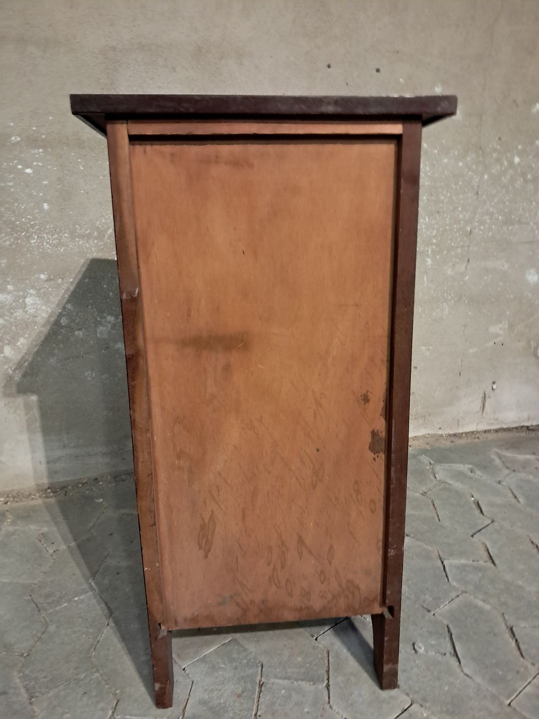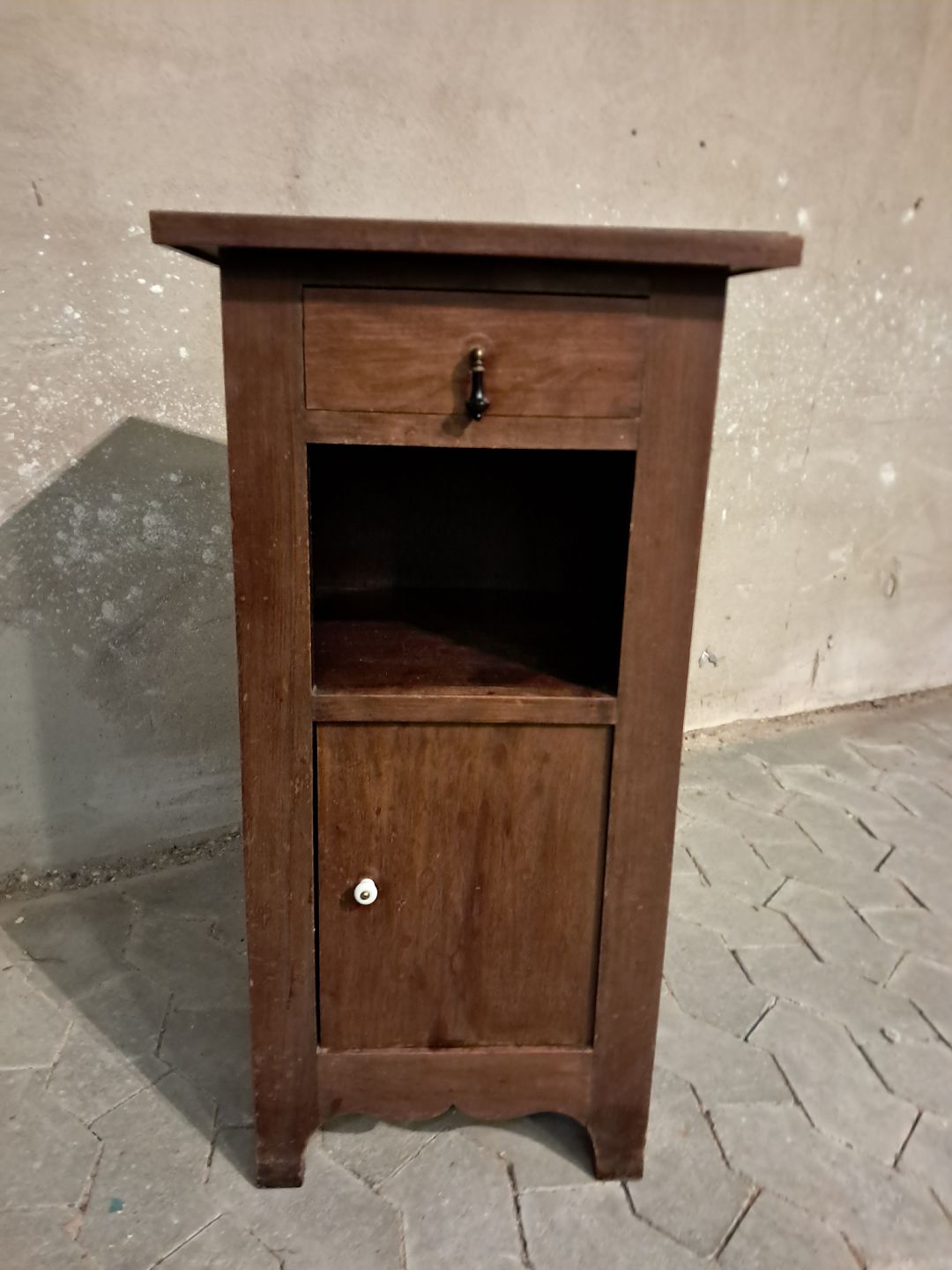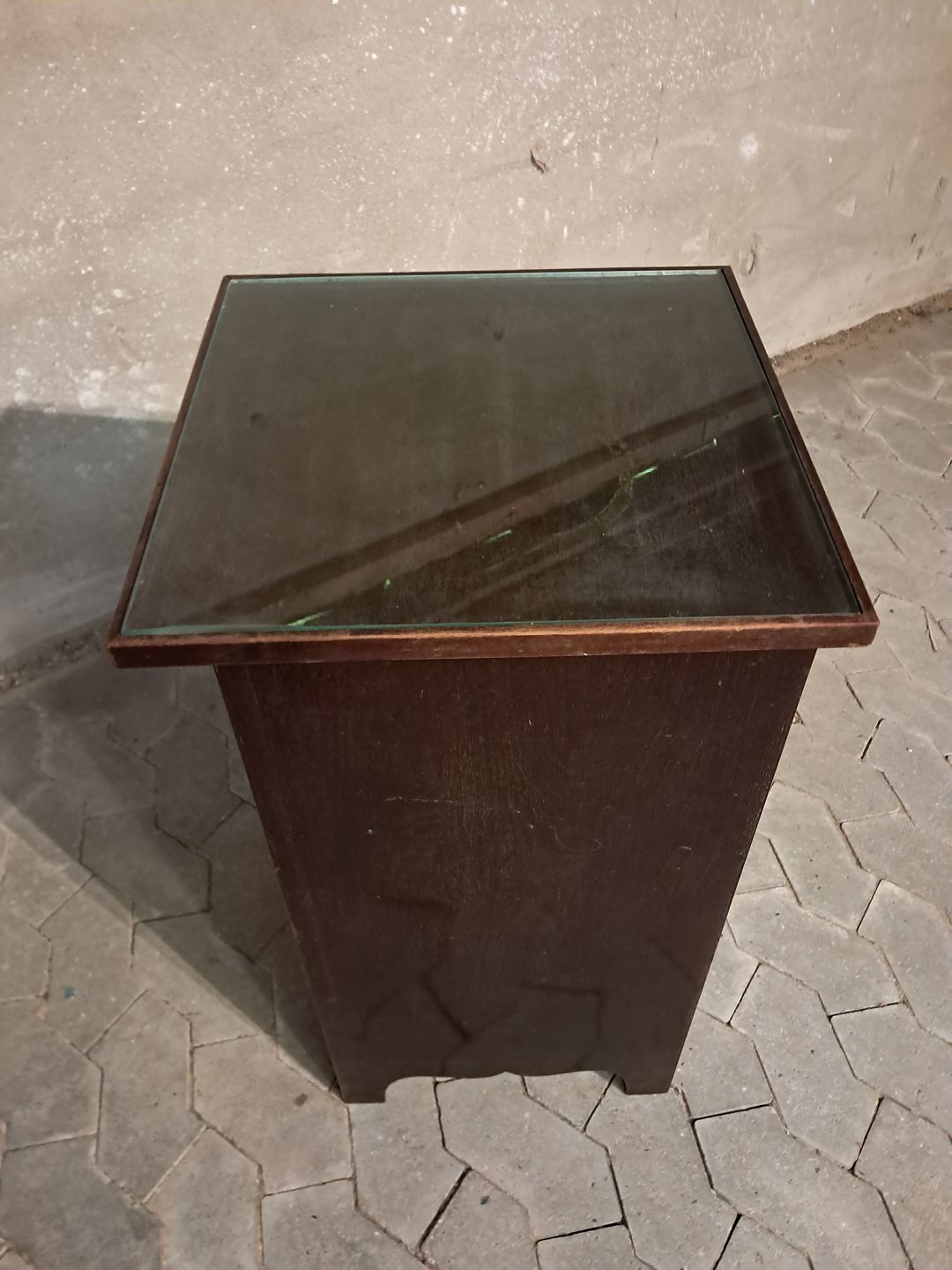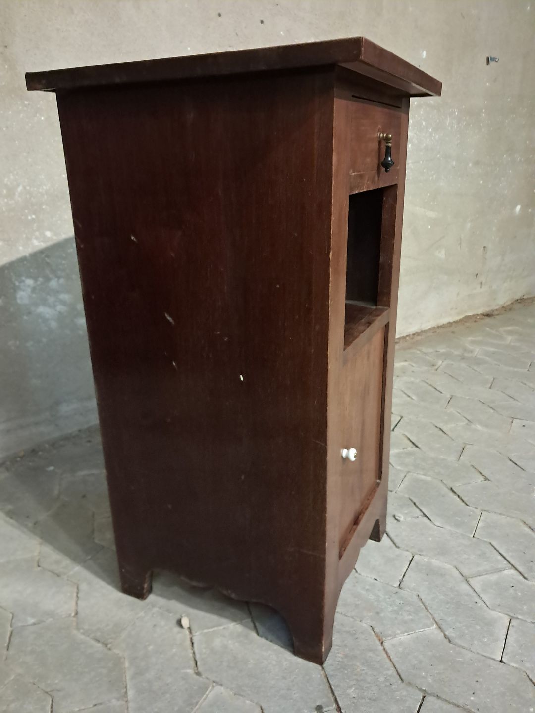 Natskab i fineret mahogni med glasplade, fra 1910erne.